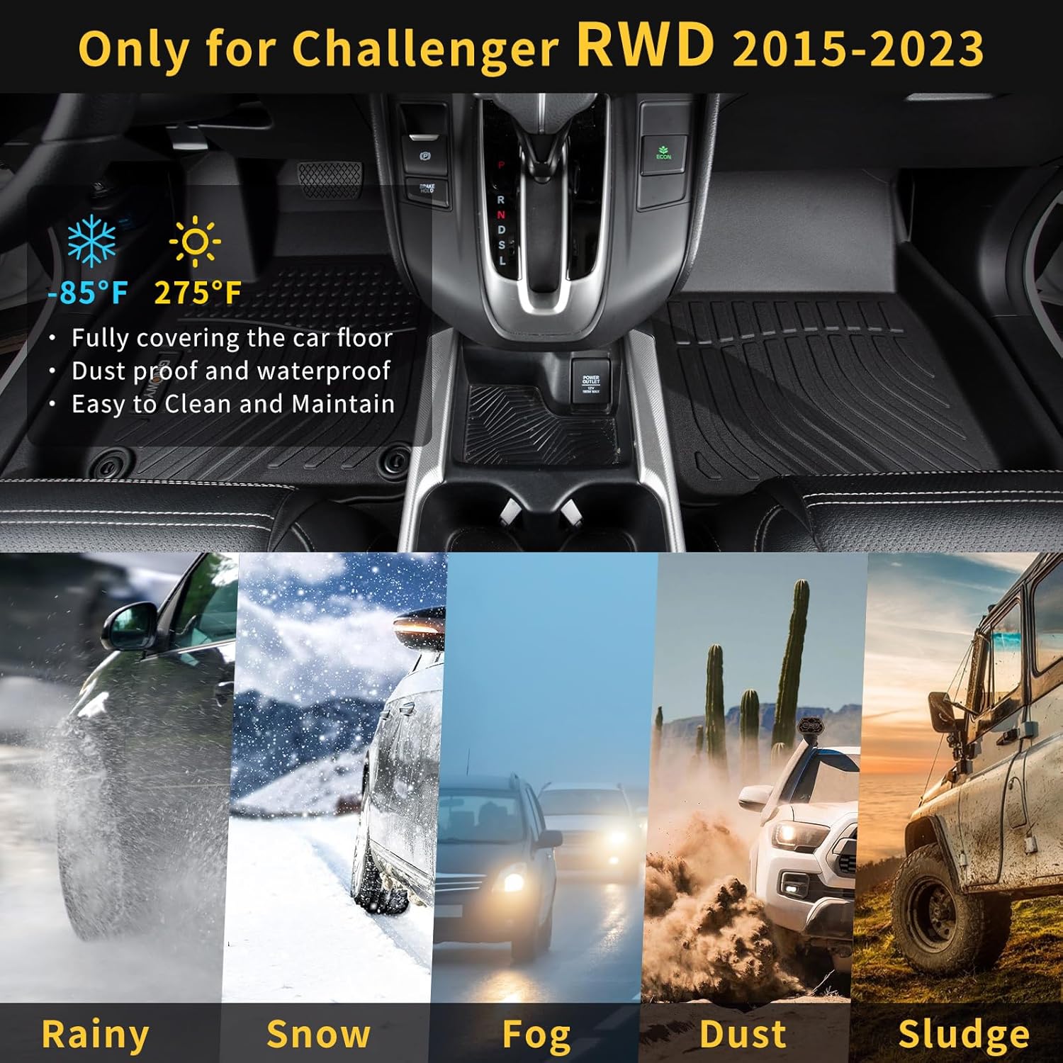 - 【Custom Fit】: For Dodge Challenger 2015-2020 2021 2022 2023 (These mats fit the original car like a glove)