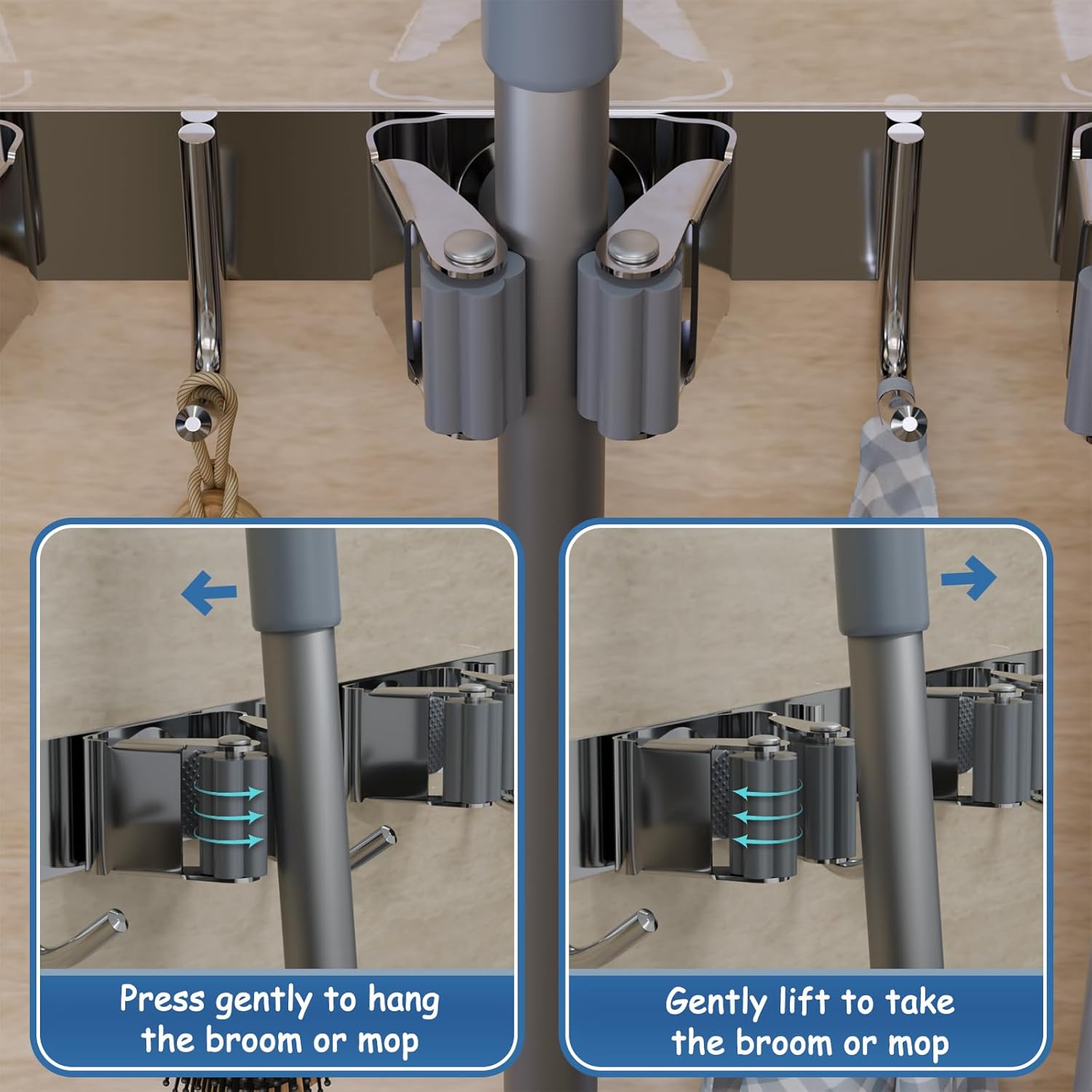 - 【Multi-Purpose Storage Solution】Securely holds brooms, mops, shovels, garden tools, and even umbrellas. Adjustable hooks and non-slip pads keep items stable, preventing falls and clutter. Perfect for households, workshops, or commercial spaces.