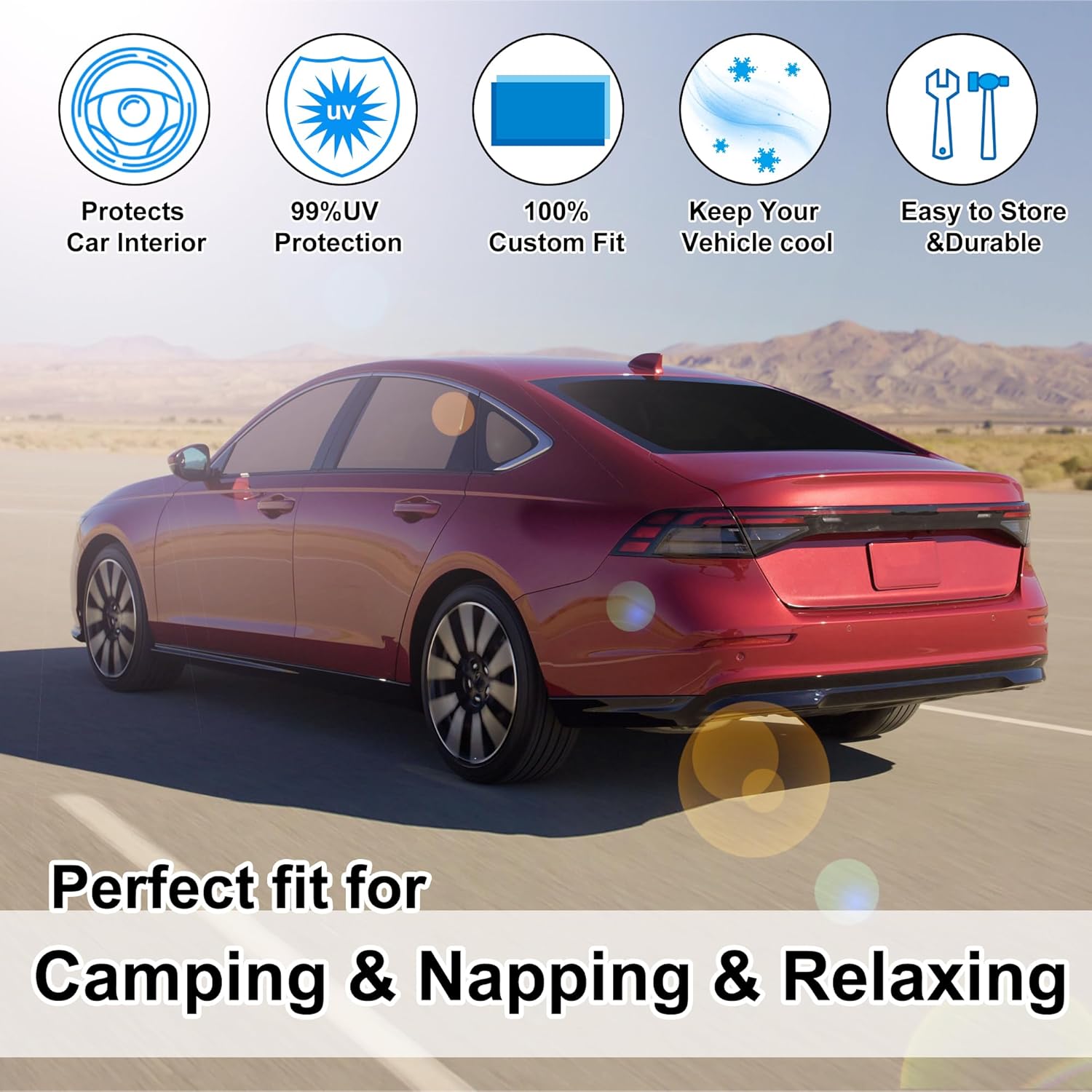 - Customized Design:The sun shade custom fit for Honda Accord 2023 2024 2025.Our window shade is according to the car size design,perfectly fit your car and does not need to trim.windshield sun shade solve the problem of light leakage and incompatibility of the old umbrellas.The sunshade designed for Honda Accord.