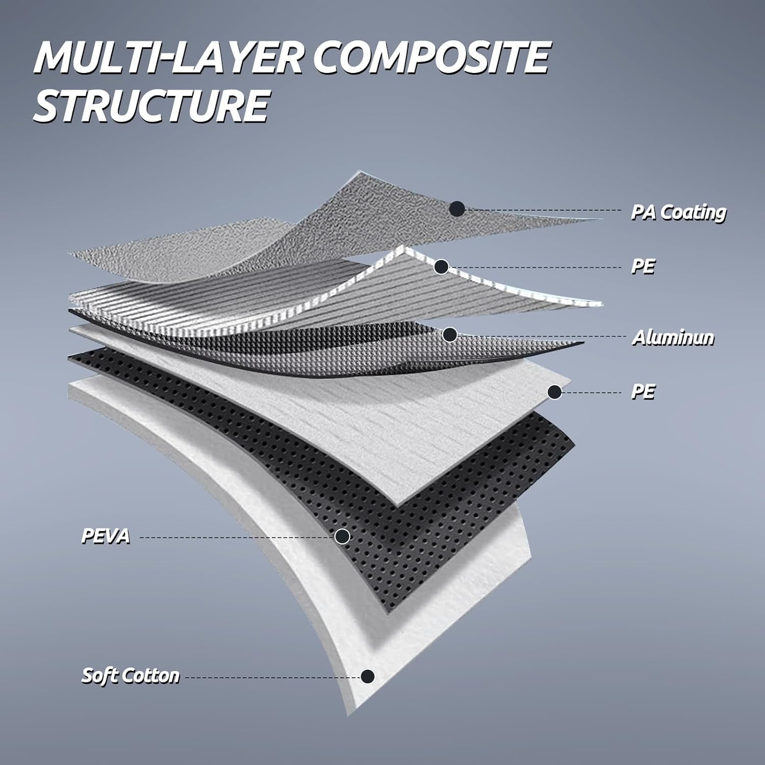 - 【High-Quality Material】Migavne car cover features a multi-layer composite material design. Layer 1 is PA coating, providing 100% waterproofing. Layers 2 consist of PE, enhancing breathability and maintaining suitable interior temperatures. Layer 3 is an aluminum membrane that reflects 99% of UV rays, reducing UV damage. Layers 4-5 are PEVA material, with strong tear resistance to maintain integrity in harsh weather. Layer 6 is soft cotton, effectively safeguarding the car's paint.