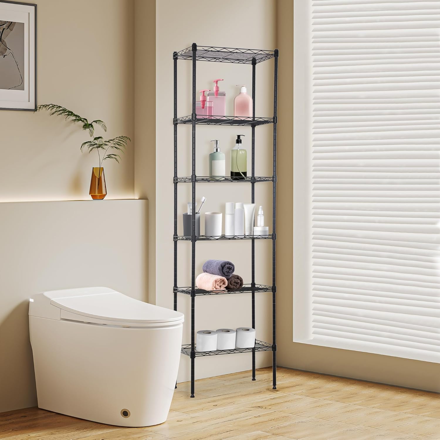 BestOffice Metal Garage Shelving 6 Tiers Garage Storage Shelves Heavy Duty 17”D x 12”W x 64”H Easy Assemble Wire Shelving NSF Certified Storage Shelves with Levling Feet for Home Garage Office, Black