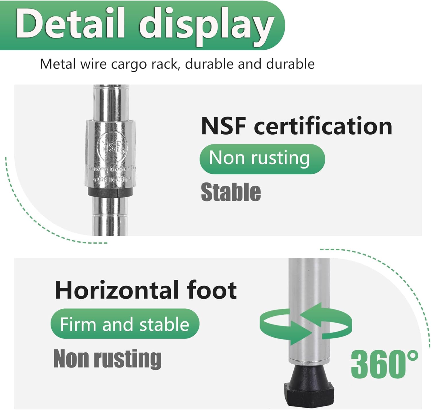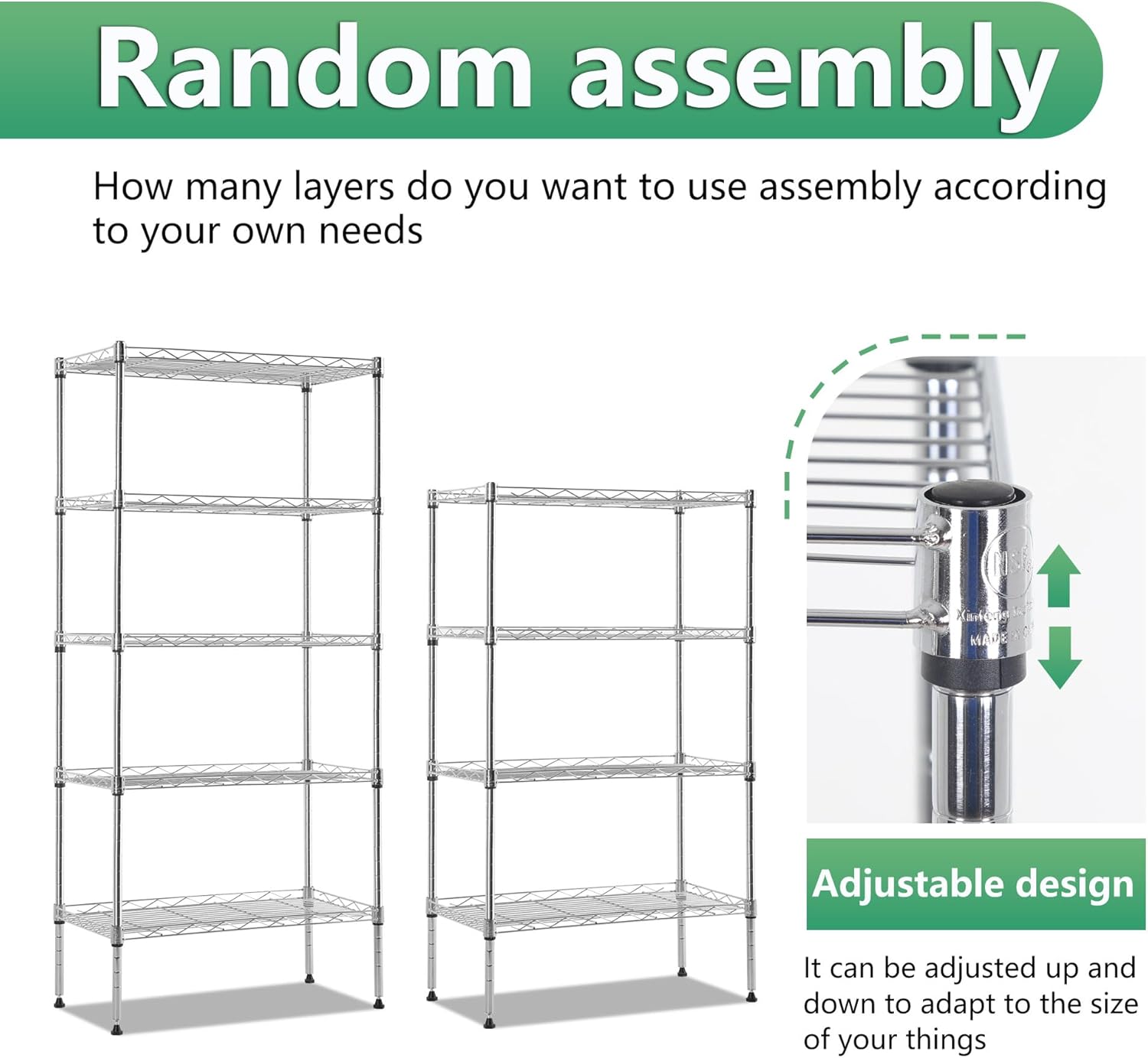 - Easy and Quick Assembly: With simple instructions and a user-friendly design, this wire shelving can be assembled quickly without the need for complicated tools. Spend less time setting up and more time organizing your space. Enjoy a hassle-free installation process with a sturdy and functional shelf in no time.