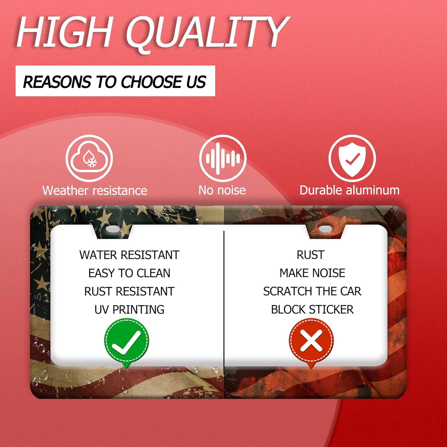 Vintage American Flag License Plate Frame Usa Flag License Plate Frames Funny Stainless Steel Accessories Cars Decor With 2 Holes Screws Fits Standard Us Ca Vehicles License Plate Holder 12.2 X 6 Inch
