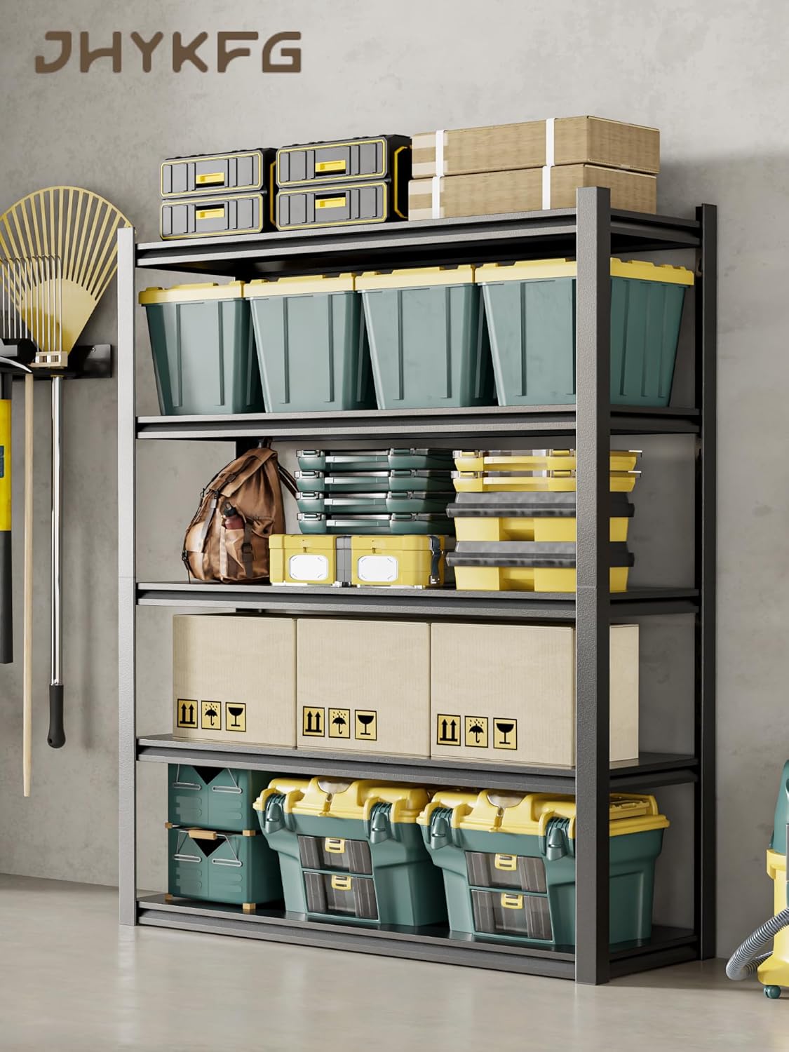 - [Heavy-Duty Steel Shelving for Maximum Durability]Built with industrial-grade steel,these 5-tier metal shelves support up to 500 lbs per shelf, ideal for garage storage,workshop tools,or pantry organization.Resists bending or warping for long-lasting use