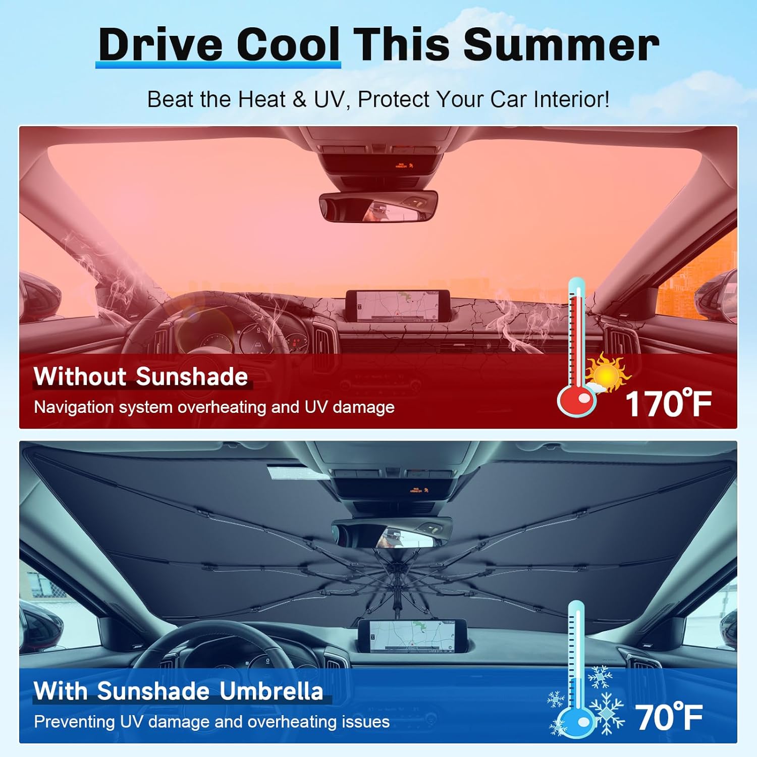 - 5. Portable & Universal Fit: Folding to umbrella size, easy to store and carry. Compatible with 2025 CX50/Camry/NX/X3/Cayenne/Envision/Grand Cherokee/EX90/Altima, it provides wide coverage and Provides effective coverage for most windshields