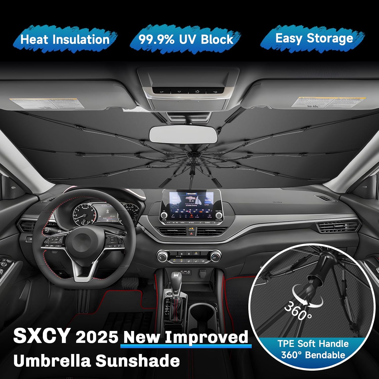 - 1. Sun & Heat Insulation: Windshield Umbrella Sunshade for 2019-2025 Nissan Altima Accessories, 99.9% UV protection, upgraded wrinkle-resistant fabric reflects heat, keeps car cool. Protects interior from fading & cracking, ensuring comfort on hottest days