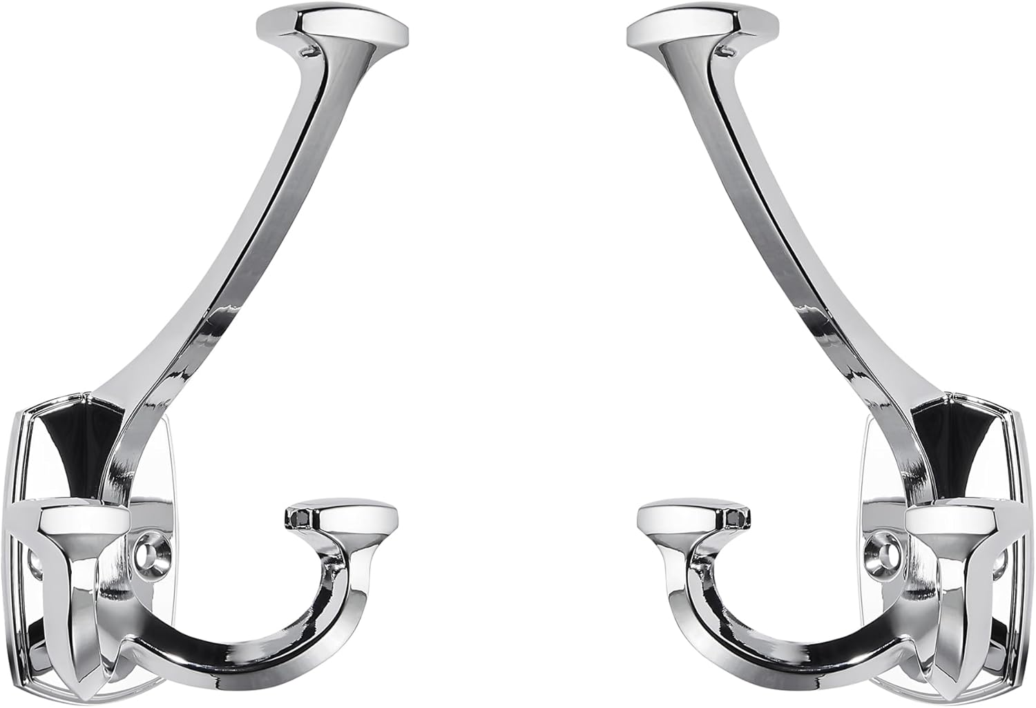 Large Wall Double-Sided Hook 2 Pack Polished Chrome Hook Decorative Heavy Duty Solid Large Coat Hooks for Towel Hanging Coats Robe Towel Bags Door Back 2 Prong Hooks
