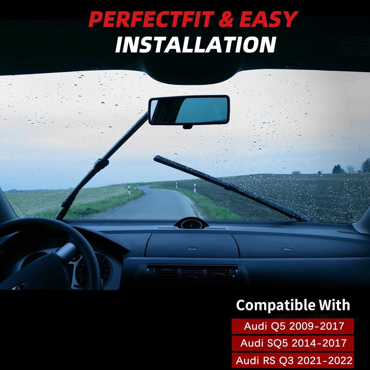 - [24"+20"+13" Perfect Fitment]: Replacement for Audi Q5 2009-2017,SQ5 2014-2017,RS Q3 2021-2022. Our windshield wiper blades are engineered to provide a perfect fit for vehicle models, ensuring optimal performance and coverage
