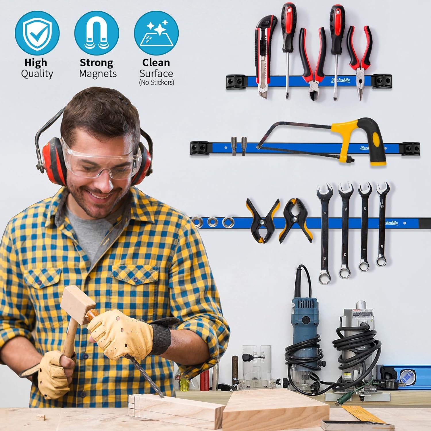 - VERSATILE WORKSHOP ORGANIZER: Clean and get rid of your messy workshop, tool box. The magnetic tool racks can easily organize wrenches, hammers, pliers, screwdrivers, wire cutters, saw blades, etc. Keep your garage, workshop, and also kitchen organized and clean, ensuring all your tools are visible and within reach.