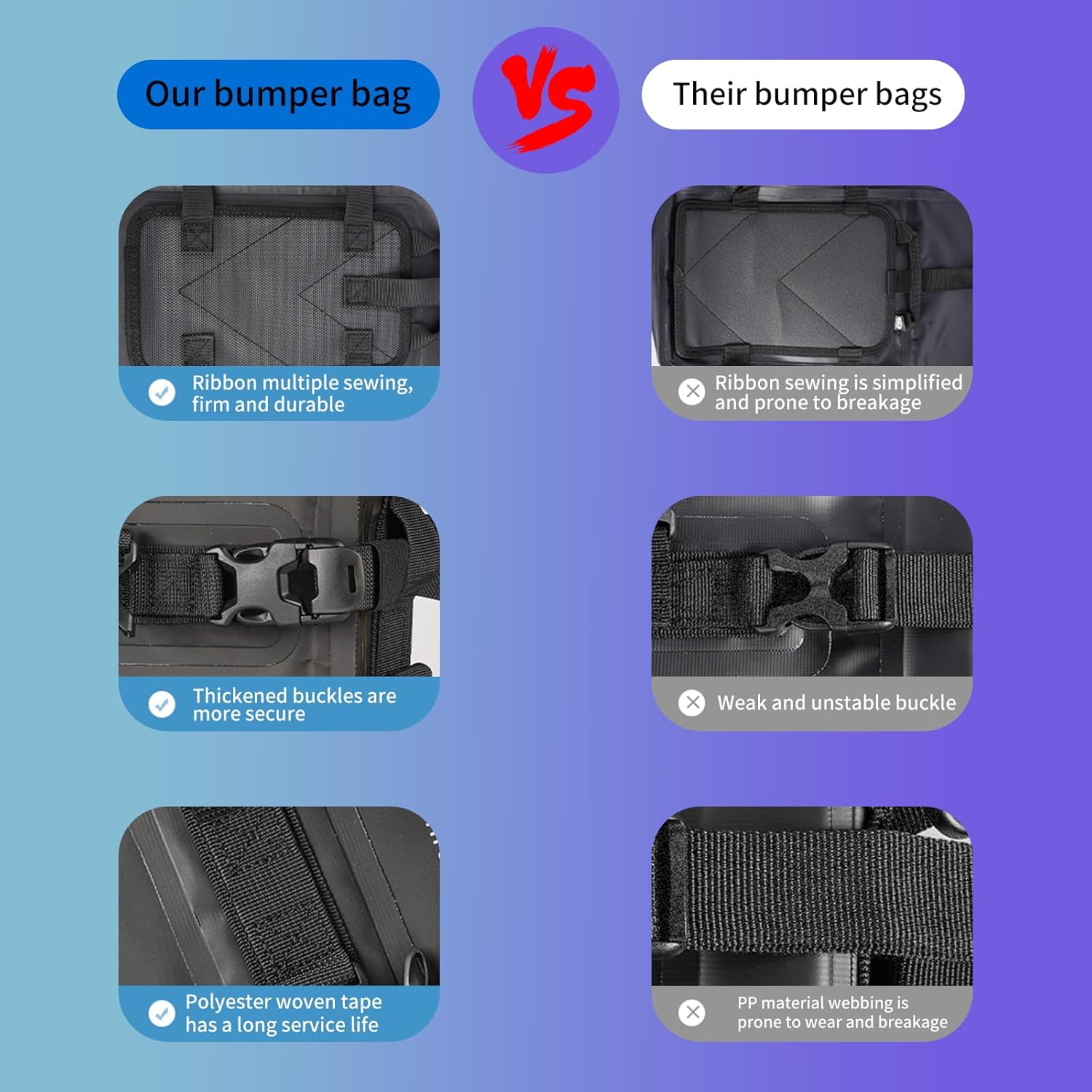 - Multiple Uses: It can be used on the motorcycle bumper, hung on the side box frame, or serve as a tail bag, bumper bag, and motorcycle rear frame bag. Additionally, we provide cross-body straps, allowing you to use it as a cross bag.