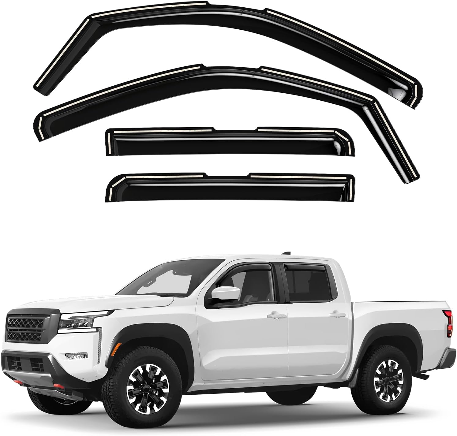 Window Deflectors Smoke Tinted in-Channel Side Window Vent Visor Deflectors Rain Guards Compatible with Frontier 2022-2025 Crew Cab - 4pcs. GW0912