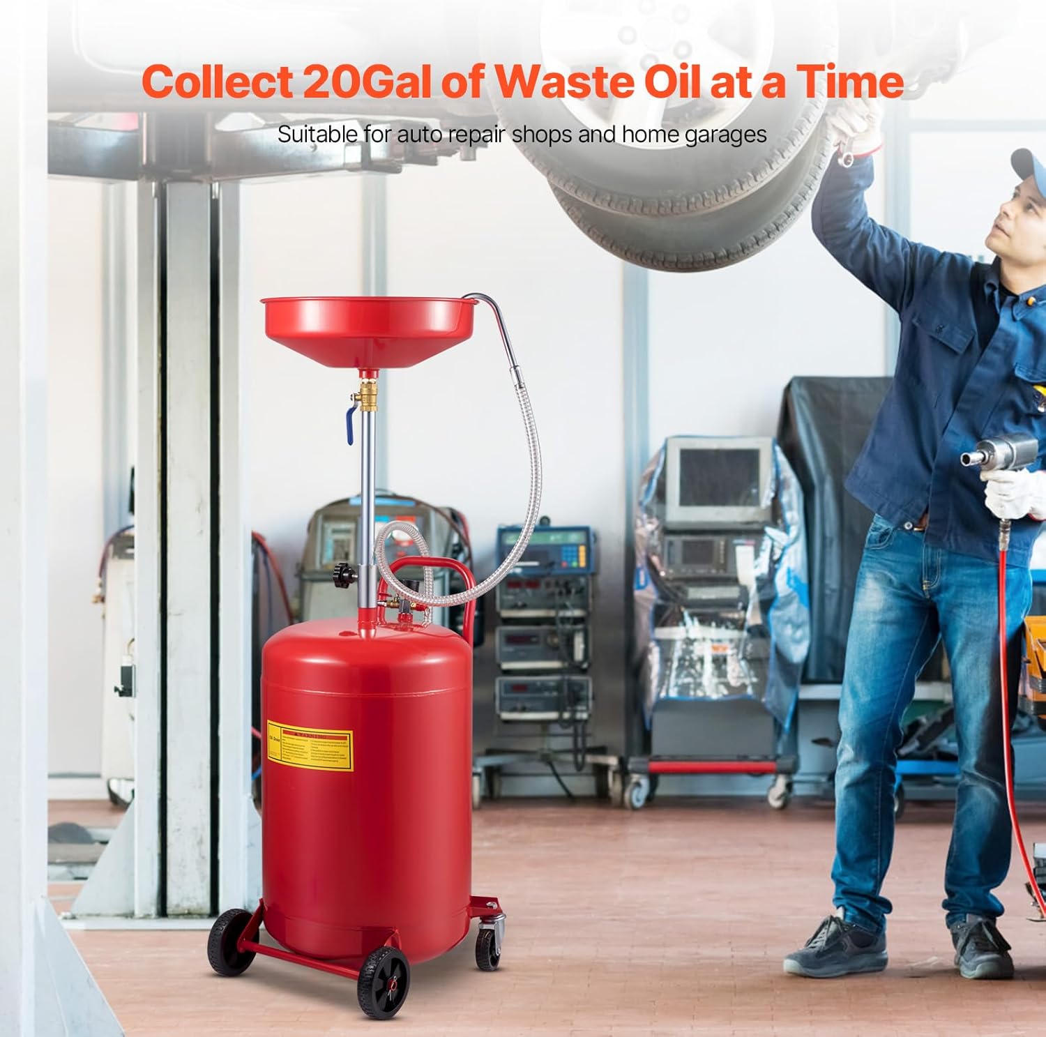 - Large Capacity: The 20-gallon oil drain can meet the needs of up to 10 consecutive waste oil treatments.. It features air operated working principle for rapid oil drainage. Ideal for draining, transferring, and evacuating oils and fluids