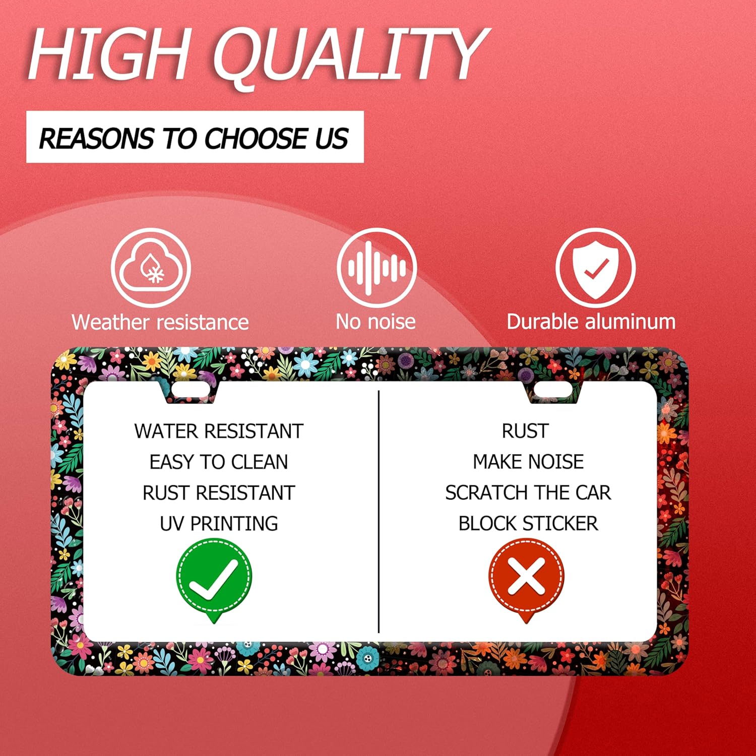 Colorful Flowers License Plate Frame Funny Floral License Plate Frames Stainless Steel Accessories Cars Decor with 2 Holes and Screws Fits Standard Us Ca Vehicles License Plate Holder 12.2 X 6 Inch