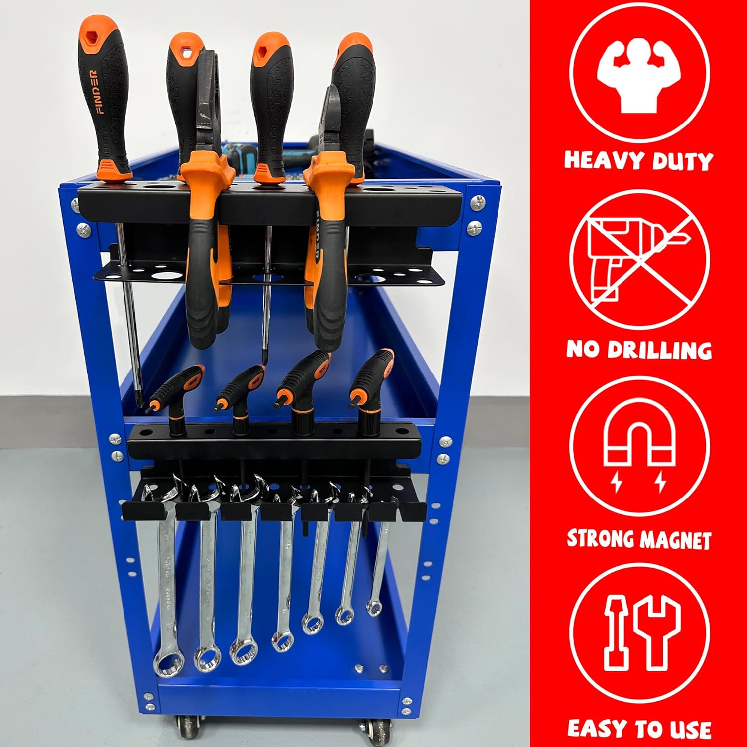 - 【Magnetic Mount Magnetic Screwdriver Holder】: Equipped with powerful magnetic strips, it can quickly attach to any metal surface, such as the garage, tool cart or pegboard. The position of the rack can be easily adjusted for flexible tool placement
