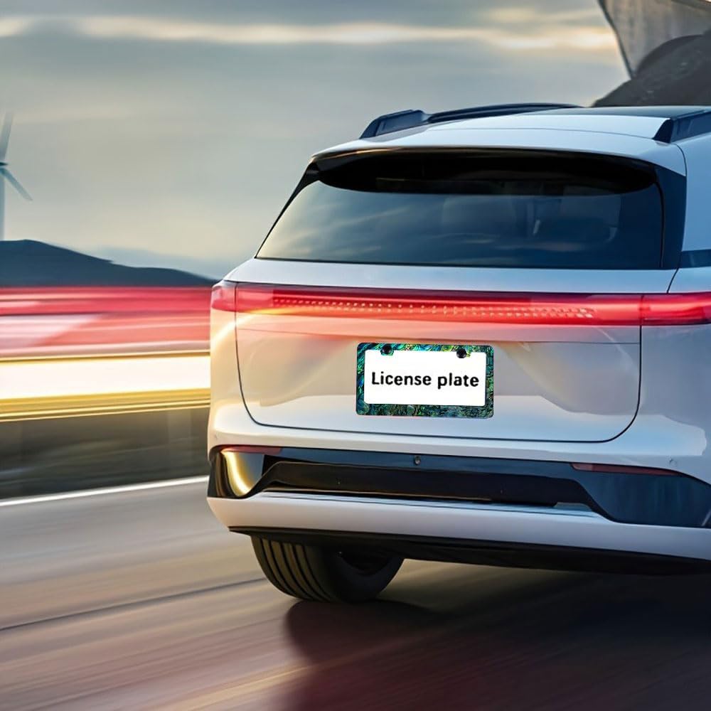 - PACKAGE CONTENTS: 1 faux abalone license plate frame designed specifically for drivers who wanting to add style to their vehicles. 60-Second Install – No Drilling Needed! Get Your Abalone License Plate Frames Securely Mounted in Just 1 Minute!