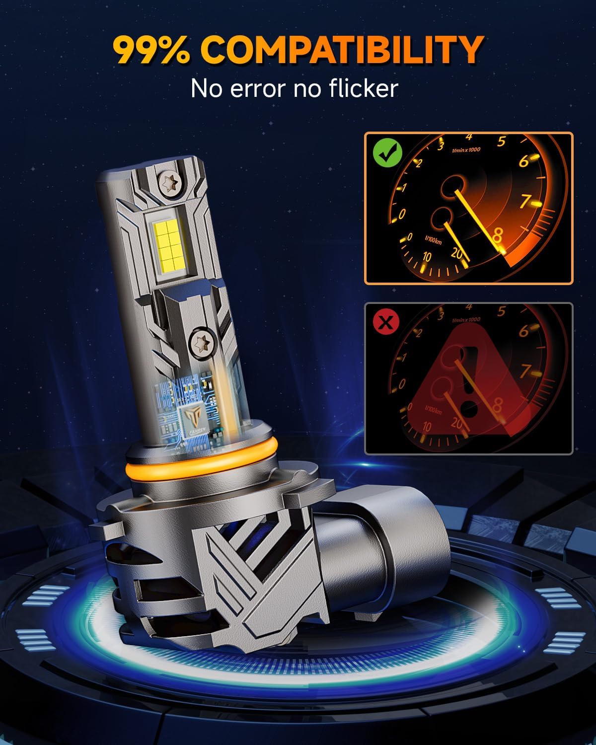 - 【10+ Years Longer Lifespan】Utilizing premium aviation aluminum as the main body and featuring a large copper baseboard for extensive heat dissipation. Coupled with a 15,000RPM high-speed cooling fan, it enhances heat dissipation efficiency. New upgraded FAHREN 9006 bulb and 9005 bulb ensures a lifespan exceeding 60,000 hours of continuous illumination and stable operation. Bid farewell to the inconvenience of frequent replacements