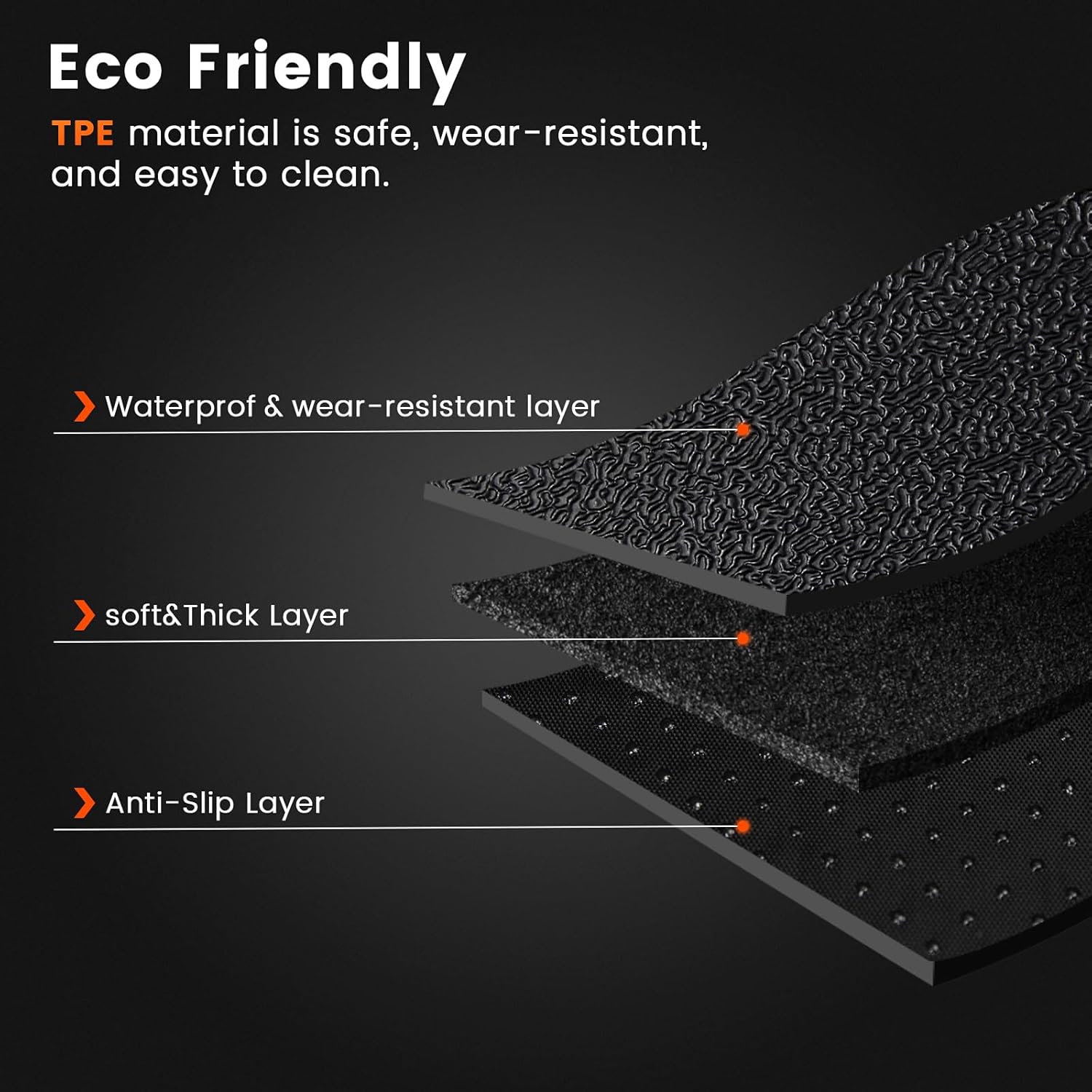 - 【Heavy-Duty & Odorless】 Upgraded eco-friendly TPE retains flexibility in -40°F~200°F, zero chemical smell even in hot weather. 3X more abrasion-resistant than rubber mats.3D anti-slip texture, anti-slip, anti-scratch, waterproof, dustproof.
