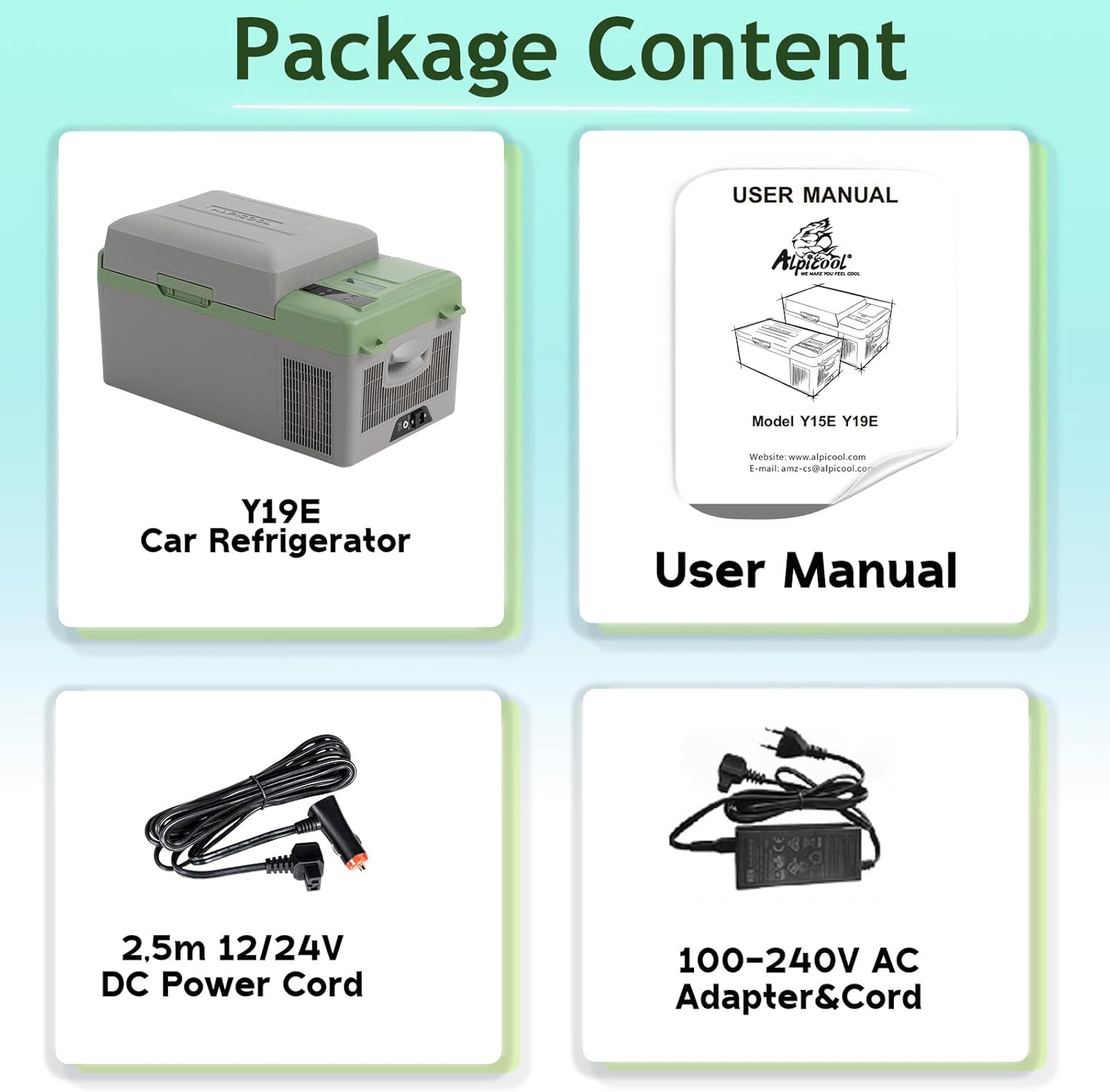 Alpicool Y19E Portable Fridge 12 Volt Car Refrigerator 21Quart Freezer for Fishing, Camping, RV, Truck, Boat-12/24V DC