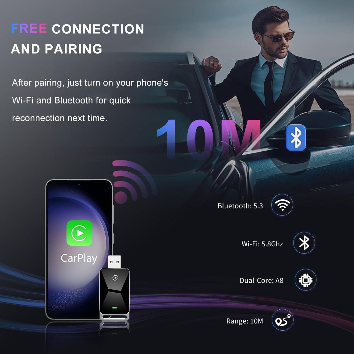 - 🚛【Broad Compatibility】Compatible with any vehicle that has a factory-installed wired Apple CarPlay, our adapter makes upgrading to wireless functionality easy and efficient, without the need for expensive modifications or replacements for your car. (If your car DOES NOT HAVE a built-in Apple CarPlay system, please DO NOT purchase.)