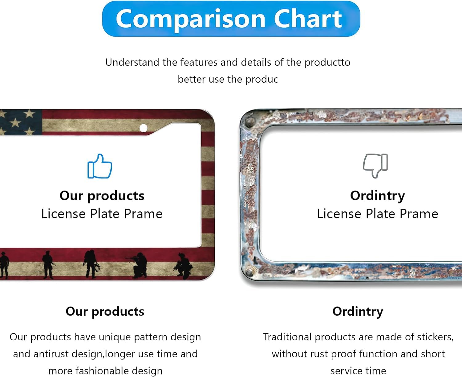 - ▶Quick Installation Design: Simply insert your license plate into the license plate holder and align the plate with the 2 holes on the frame for easy installation. The 2 Pieces aluminum american flag license plate frames accessories include 4 screw caps, 4 screws, 4 washers.
