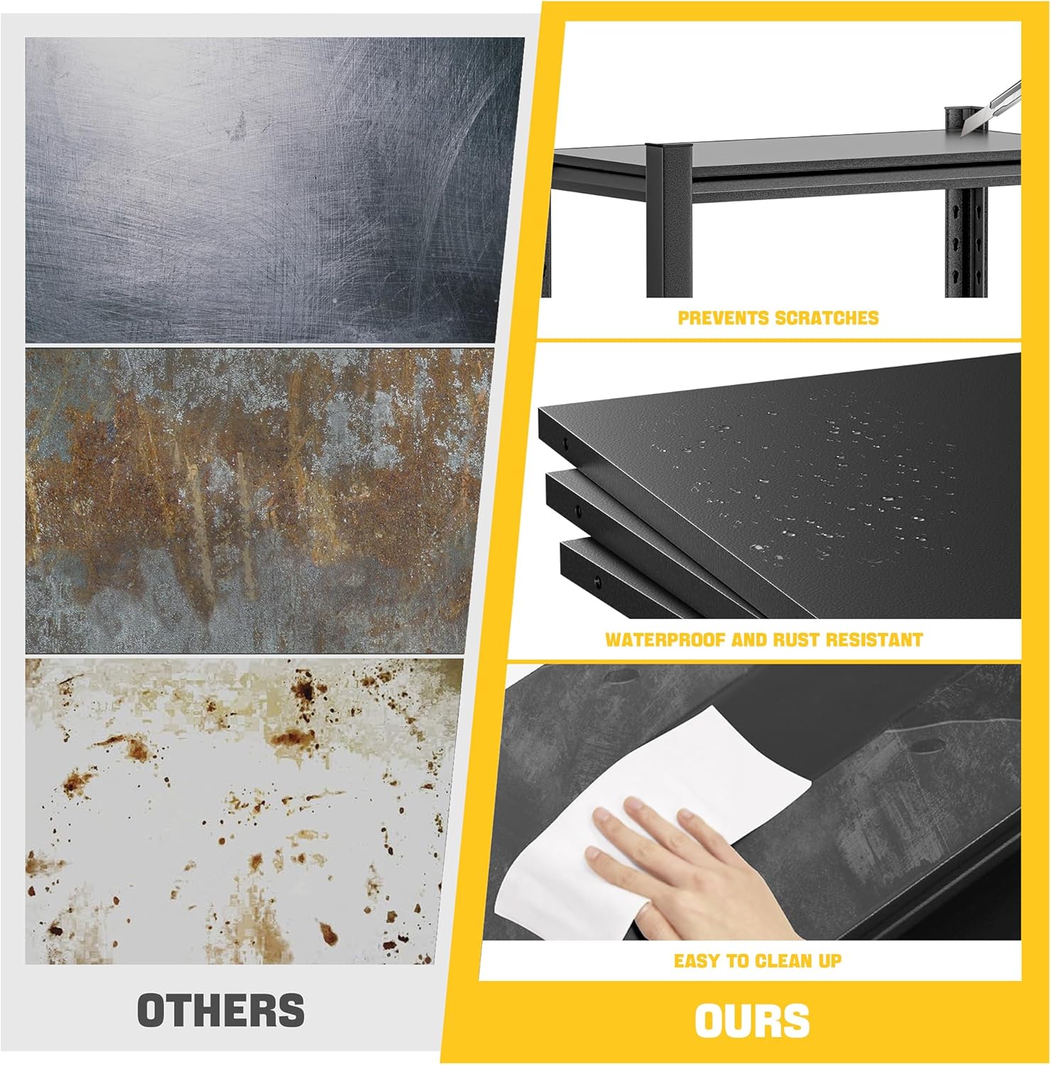 - 👉 HEAVY-DUTY LOAD-BEARING DESIGN: This metal shelves are made of high-strength steel to create a strong load-bearing capacity, easily carrying tools, equipment, storage boxes and other heavy objects, stable and durable, safe and worry-free!