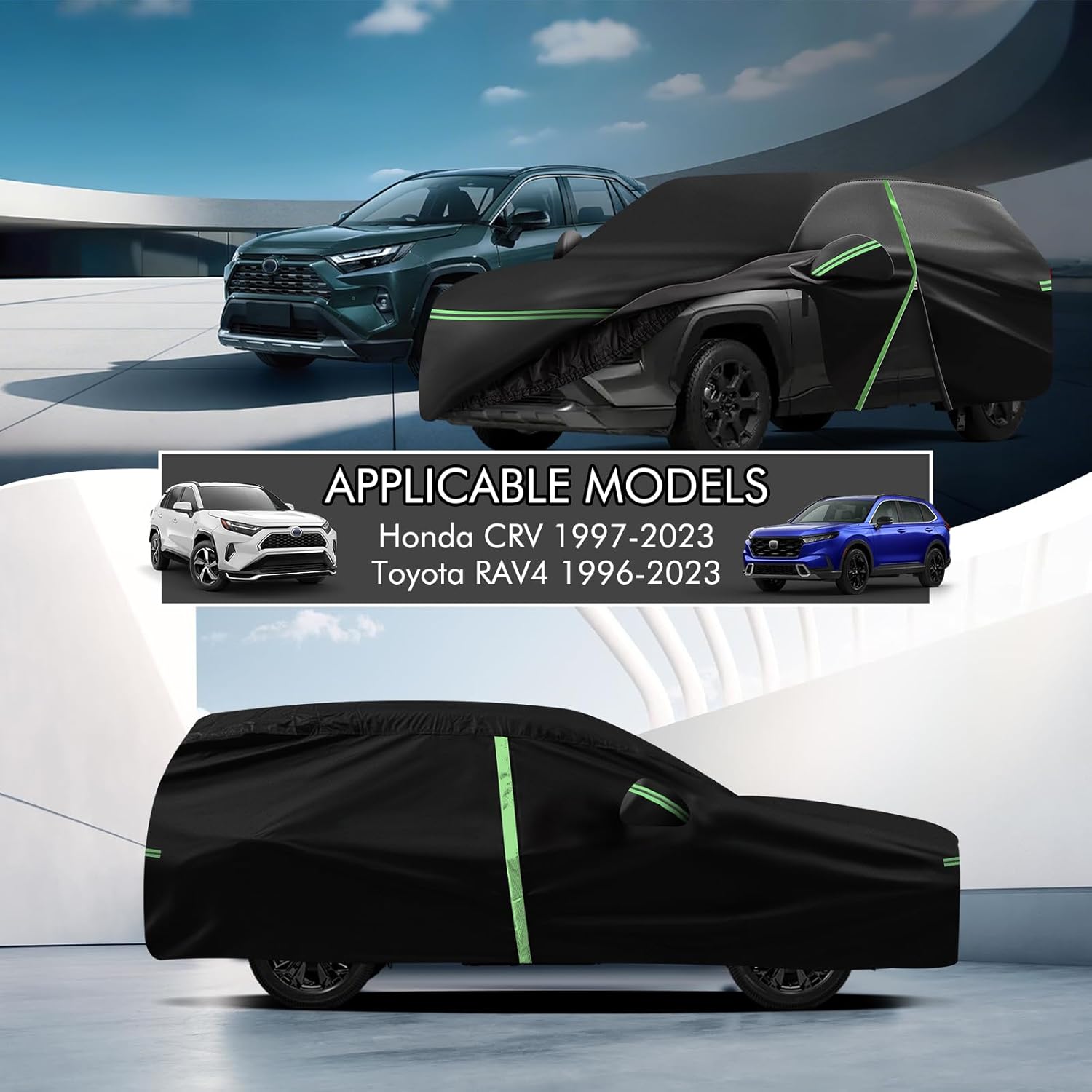 Car Cover for Honda CRV 1997-2025, Toyota RAV4 1996-2025, 210D Outdoor Waterproof UV Protection, Rain Sun Snow Protector with Cotton Layer, Zipper Door, Reflective Strip, Storage Bag