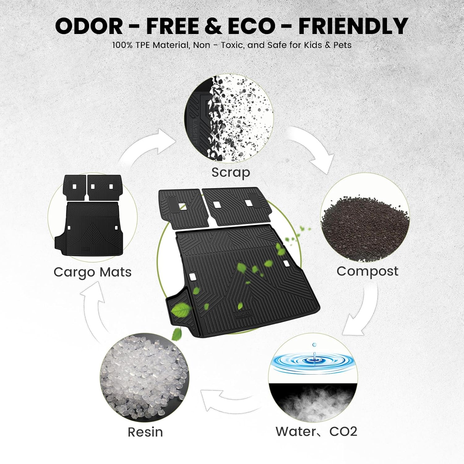 - ENVIRONMENT FRIENDLY- The All Weather 4 runner trunk mat&backrest mat use elastic TPE (Thermoplastic Elastomer), No foul odor is produced even at high temperatures. soft touch and exquisite finish. The Lasfit 4 runner cargo mats are skid-proof and recyclable.
