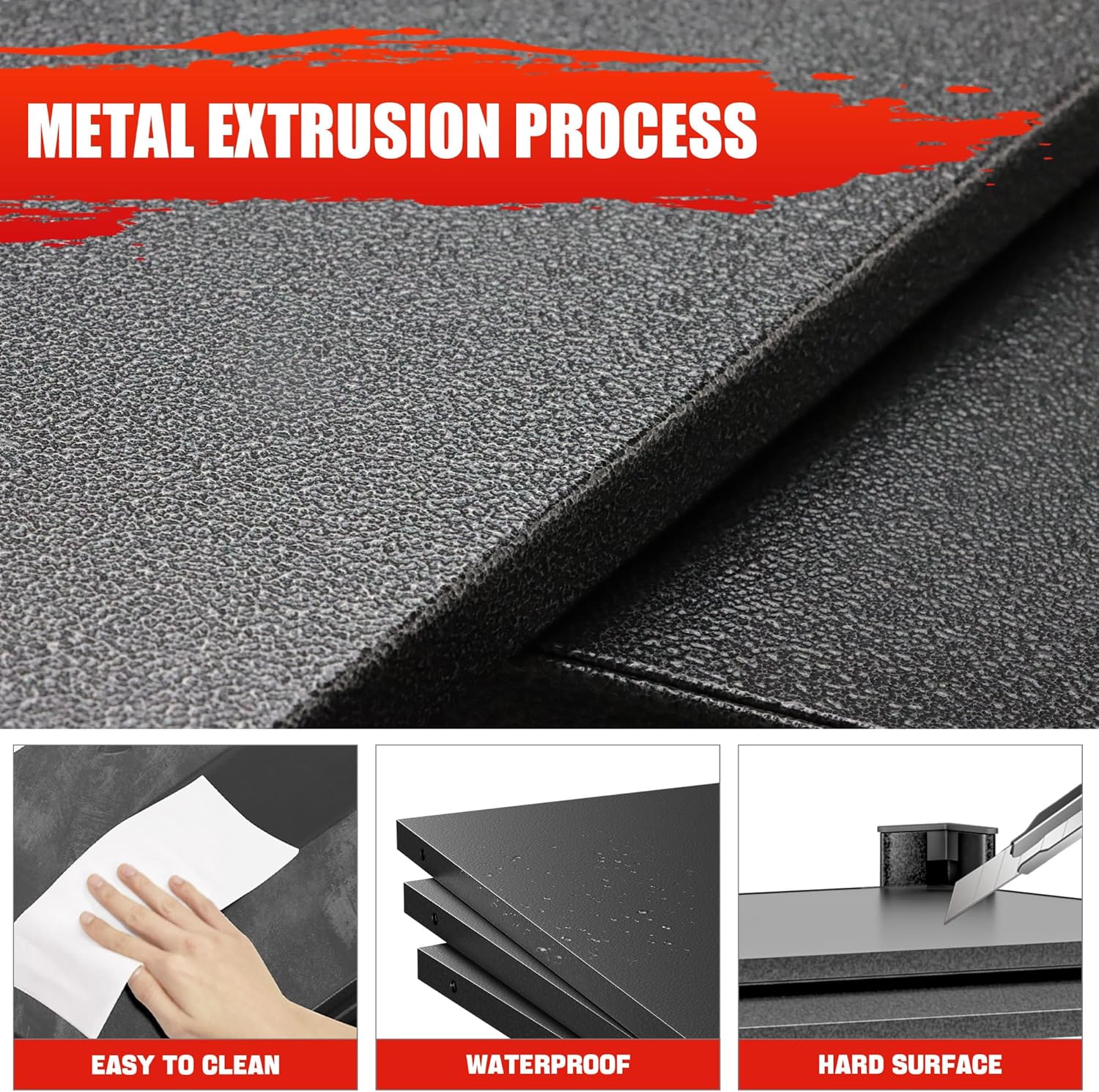 - 🦴【Adjustable Four-Tier Shelving】The garage shelving comes with adjustable four-tier shelves, allowing you to customize the height of each shelf to accommodate items of various sizes. This flexibility makes it ideal for organizing everything from small tools to large boxes.