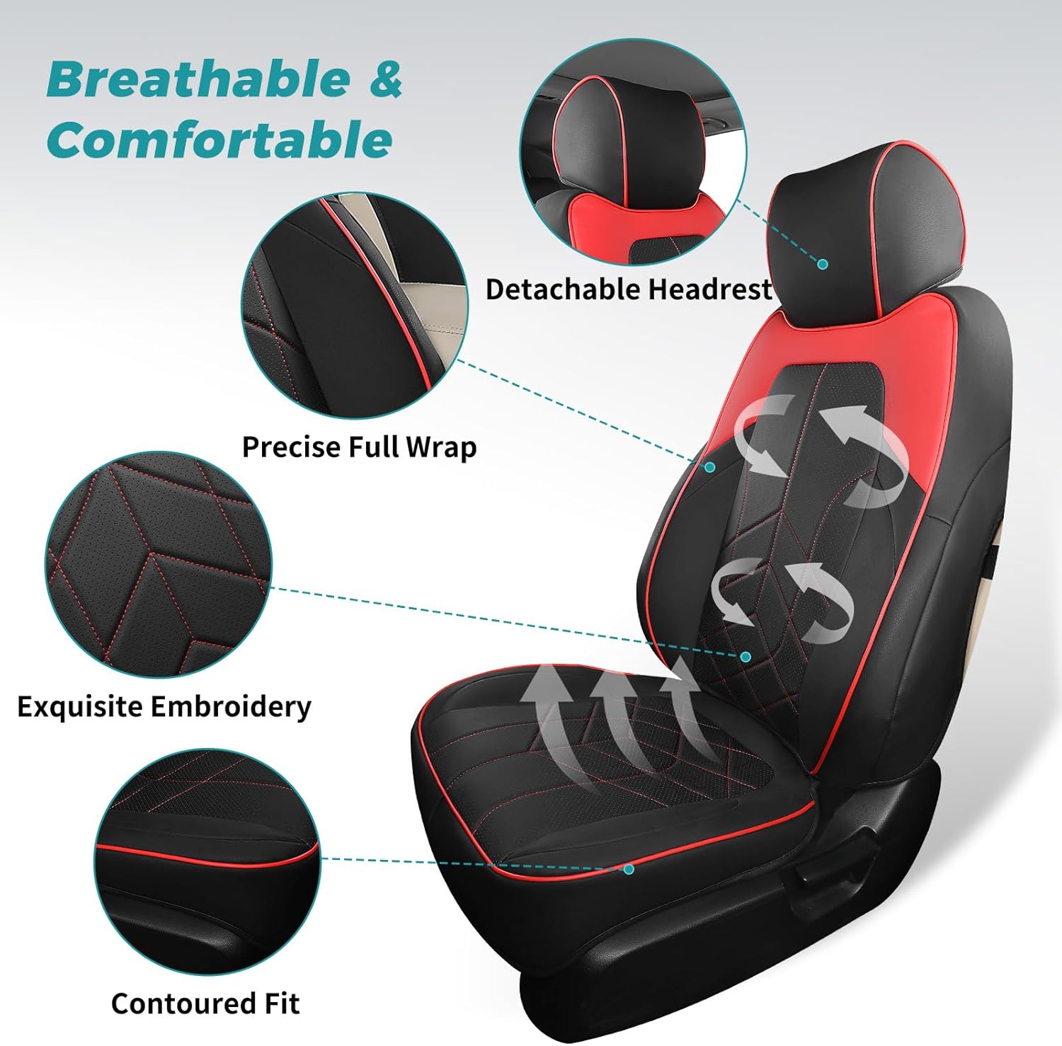 for Honda CRV Seat Covers Custom Fit 2017-2022 EXL EX LX Sport,Touring,Hybrid - Luxury Waterproof Leather Car Seat Covers Full Set - BlackRed
