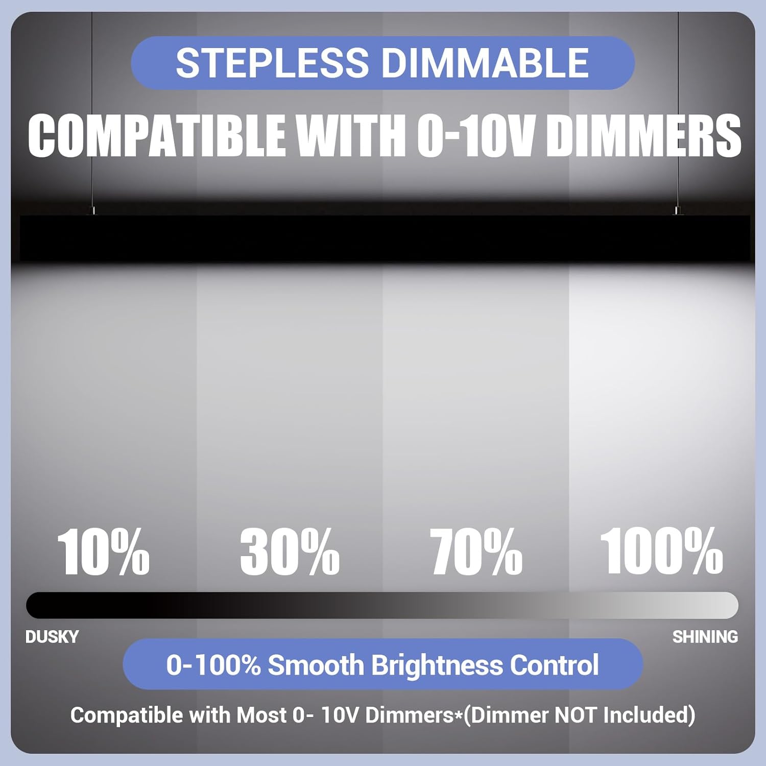 - LINKABLE AND 3000/4000/5000K 3CCT: The suspension linkable led lights can stand individually or in Seamless continuous runs with up to 8 lights, providing clean architectural lighting for your building. Compatible with 0-10V dimmer (not included) to control brightness from 0%-100% without flickering and buzzing.