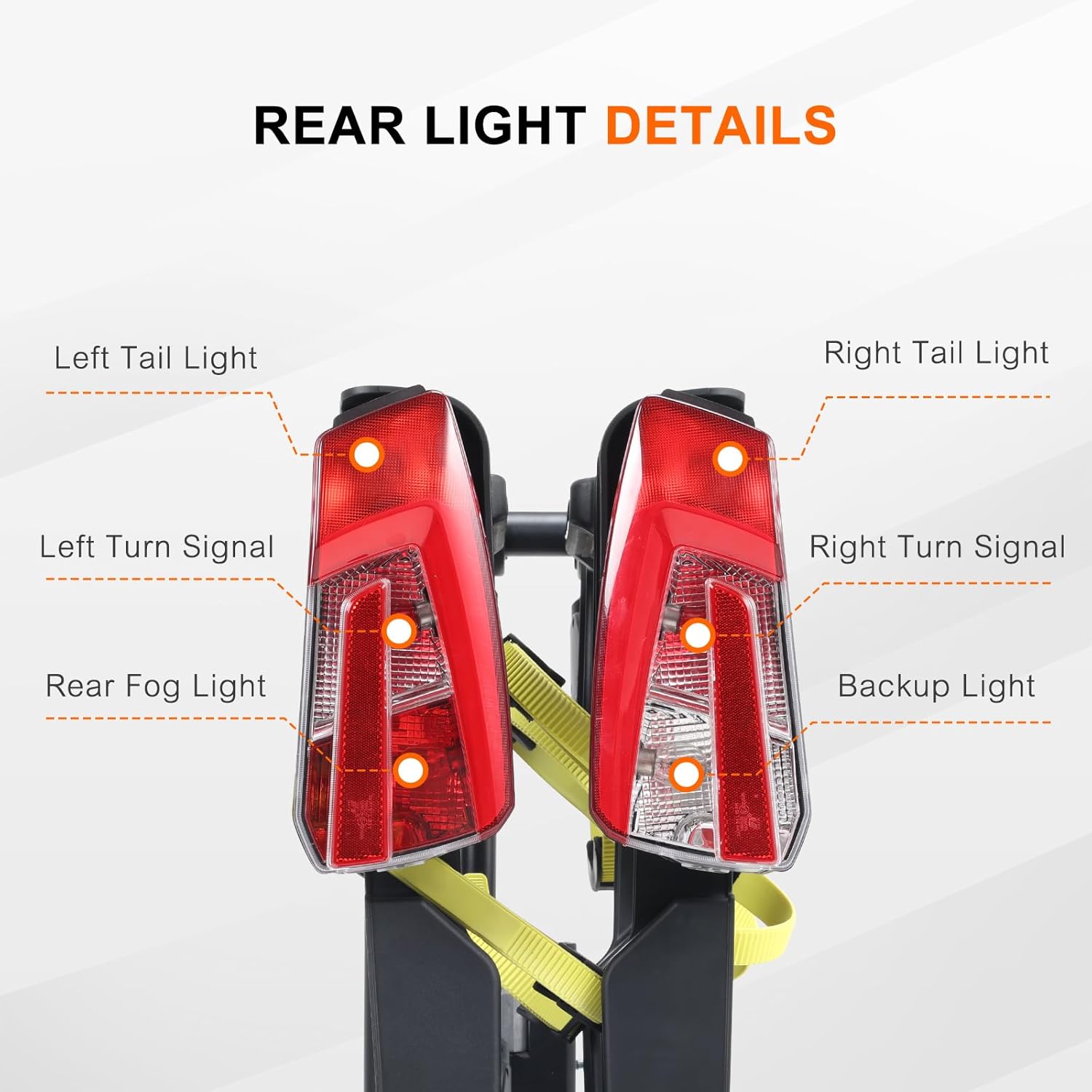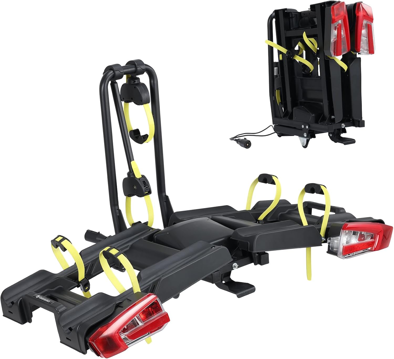 - Powerful LED Lights: This hitch rack for electric bicycles features built-in LED lights with a seven-pin connector, boosting road safety during twilight, foggy conditions and aids safe bike loading and unloading in low light