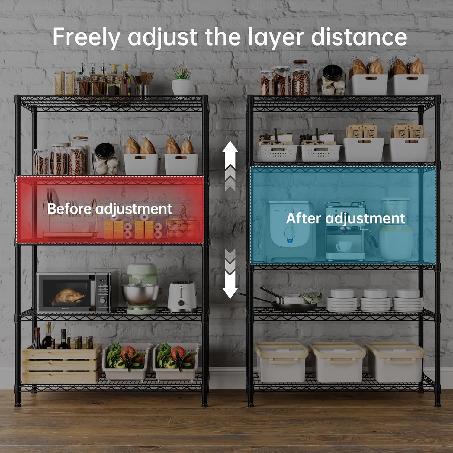 - Convenient Home Storage: Metal wire shelves with adjustable spacing make perfect for narrow spaces or room corners such as kitchens, bathrooms, laundry rooms, balconies, garages, entries, or offices.