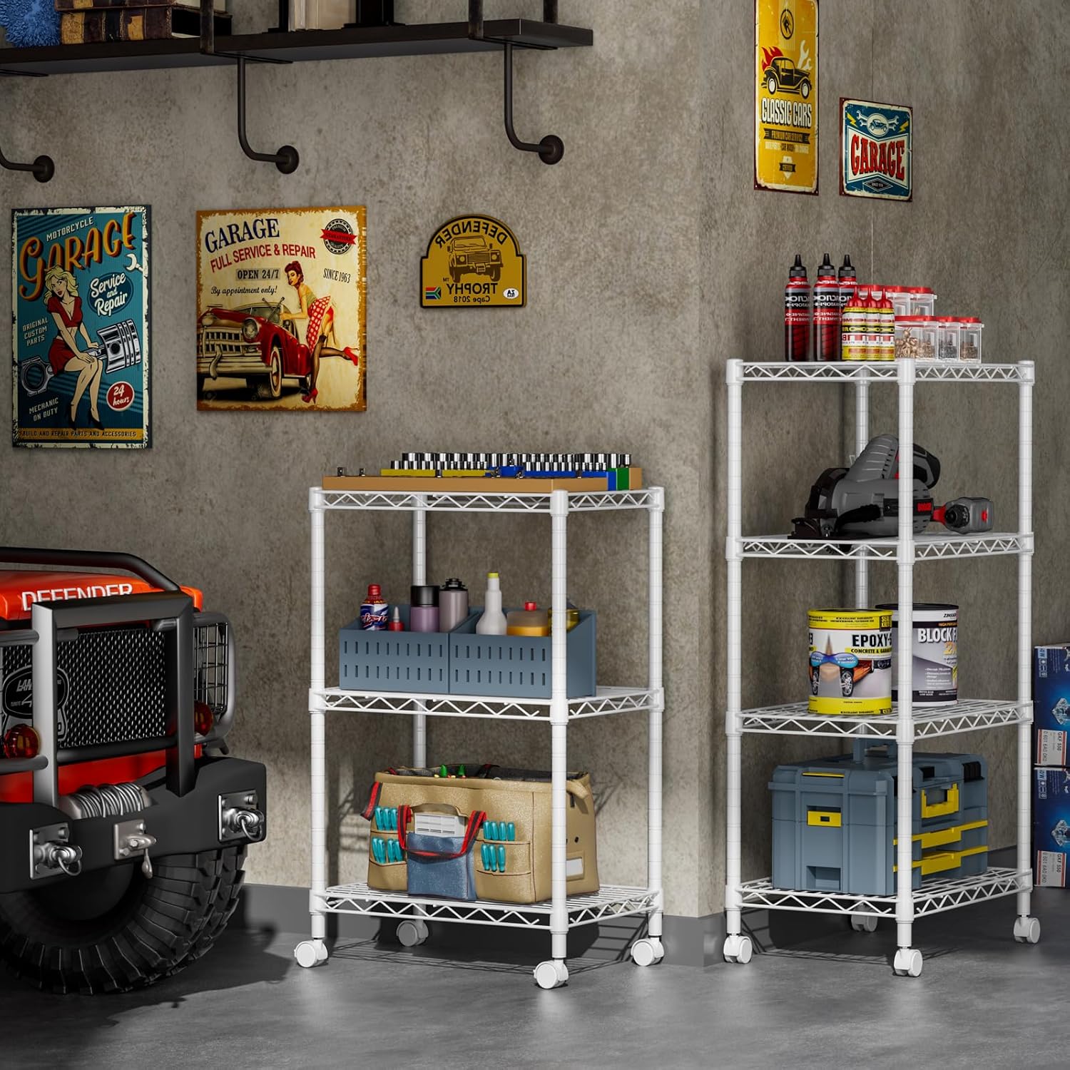 - Convenient Home Storage: Metal wire shelves with adjustable spacing make perfect for narrow spaces or room corners such as kitchens, bathrooms, laundry rooms, balconies, garages, entries, or offices.