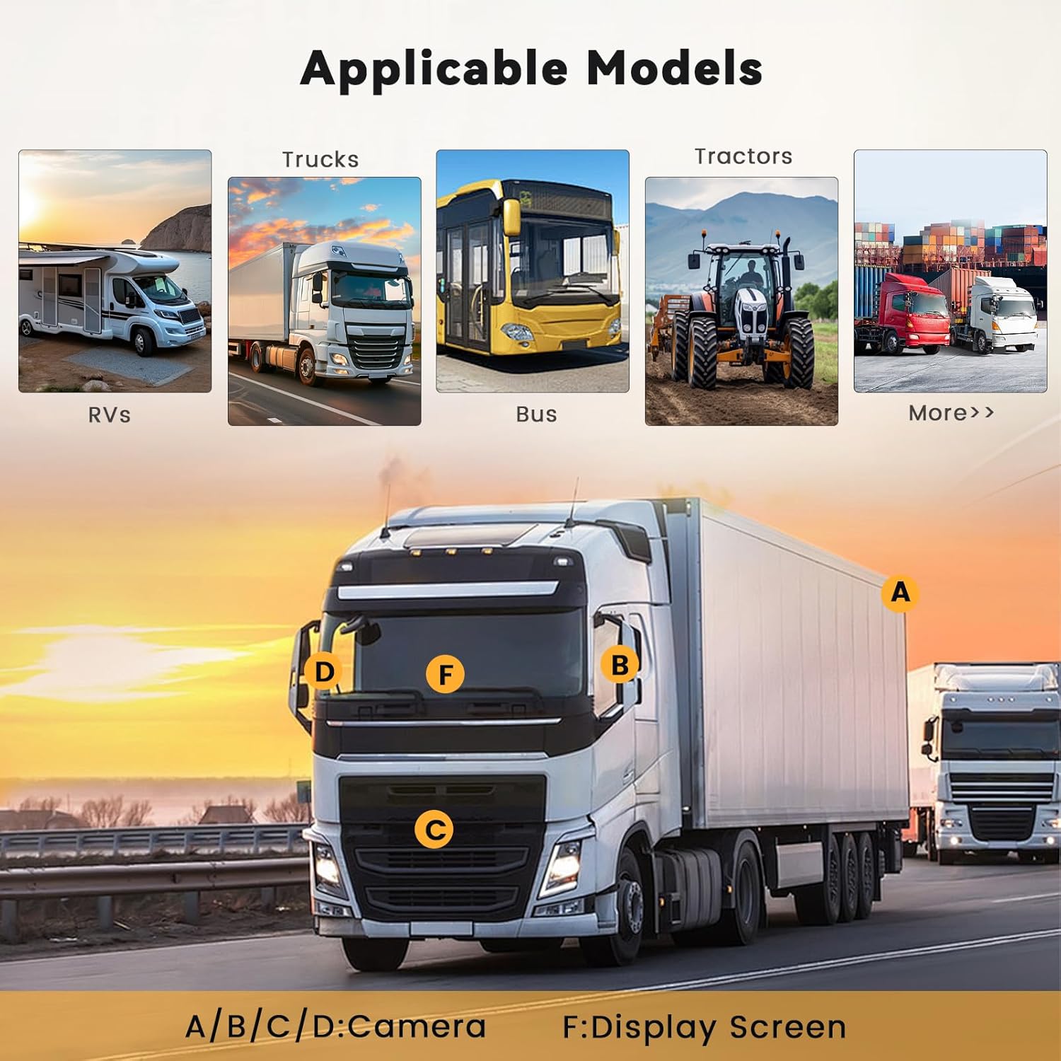 - 【Reverse Camera Monitor With Wide Comatability】Voltage Range From 12-24V DC Power to Accomodate a Wide Variety of Large Vehicle as Truck, Bus, RV, Tractor, Car and ect