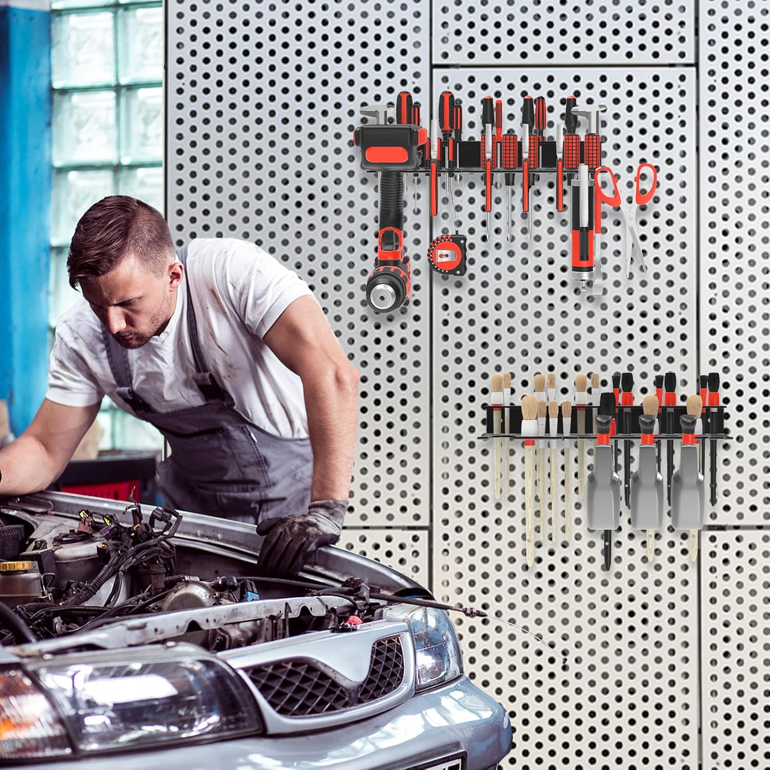 - 【Metal Screwdriver Organizer】 This tool rack neatly organizes screwdrivers, pliers, and drill bits for easy access at a glance, Perfect for installing in garages, workshops and workbenches.tool holder wall mount of diversified and vertical design can holder screwdrivers pliers hammer and other accessories.