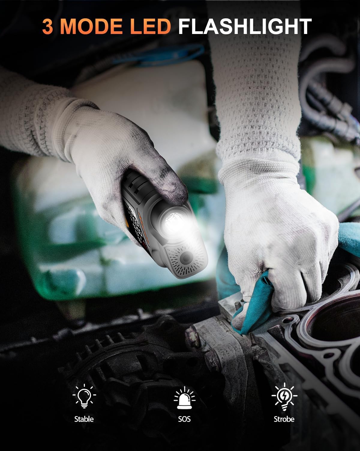 - Portable Power Bank--The jump starter kit power supply supports USB-C fast charging (2-hour full charge) and a high-capacity 22.2Wh battery. Equipped with a USB cable for charging more electronic devices, it's perfect for everyday travel, long trips, or emergency charging. Say goodbye to low battery worries.