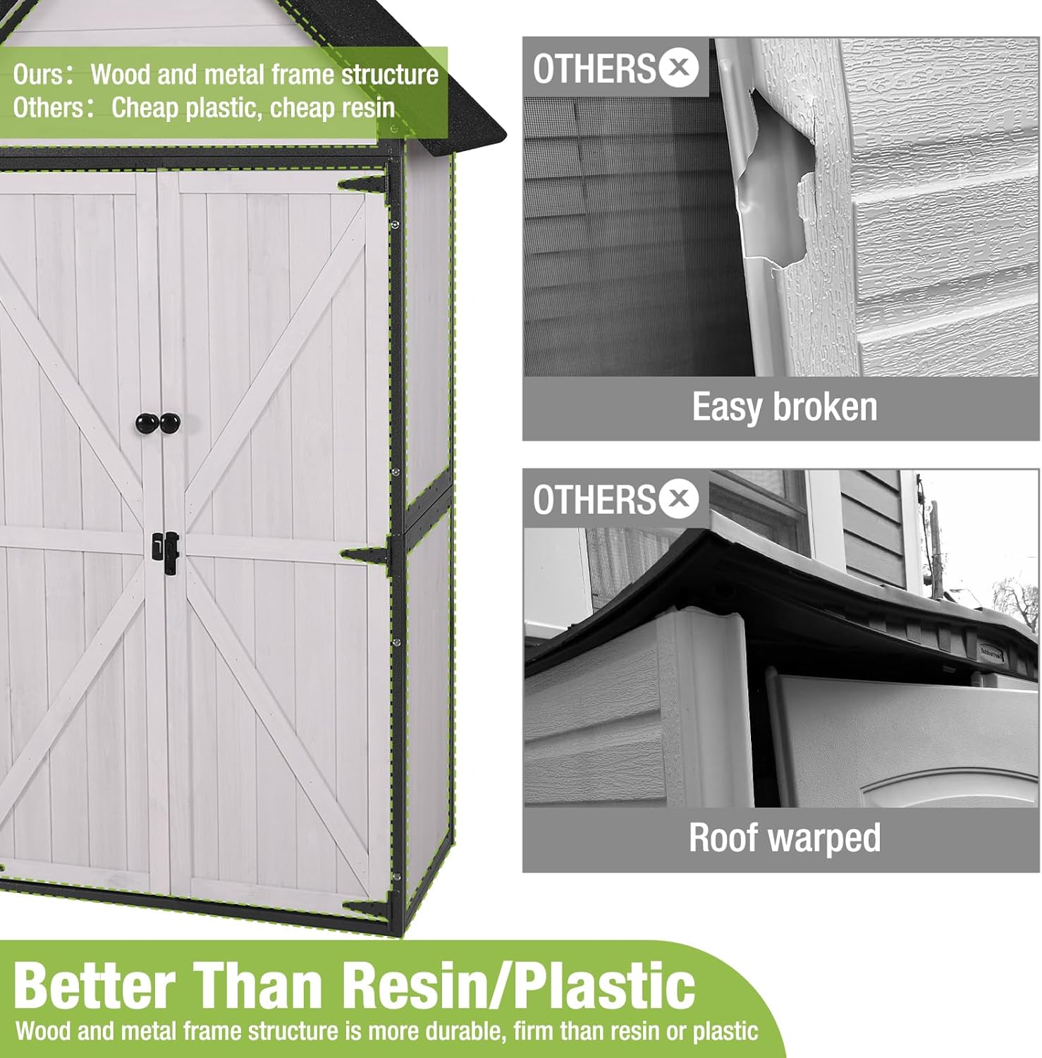 - Sturdy Metal Frame: Sheds outdoor storage with the combination of a metal frame and quality wood ensures strong load-bearing capacity and durability