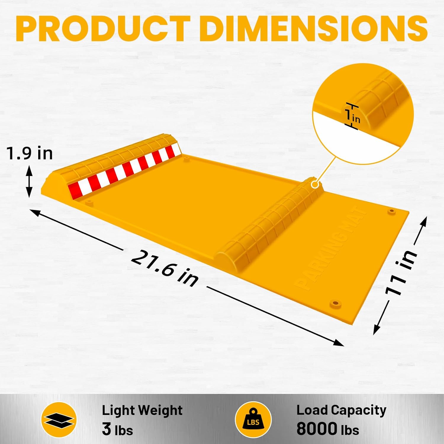 - Fit for All Vehicles: This parking stopper for garage measures 21.6 inches x 11 inches x 1.9 inches and is compatible with cars, RVs, SUVs, vans, and other vehicles. It helps you park efficiently and quickly, whether in a garage or an outdoor parking lot
