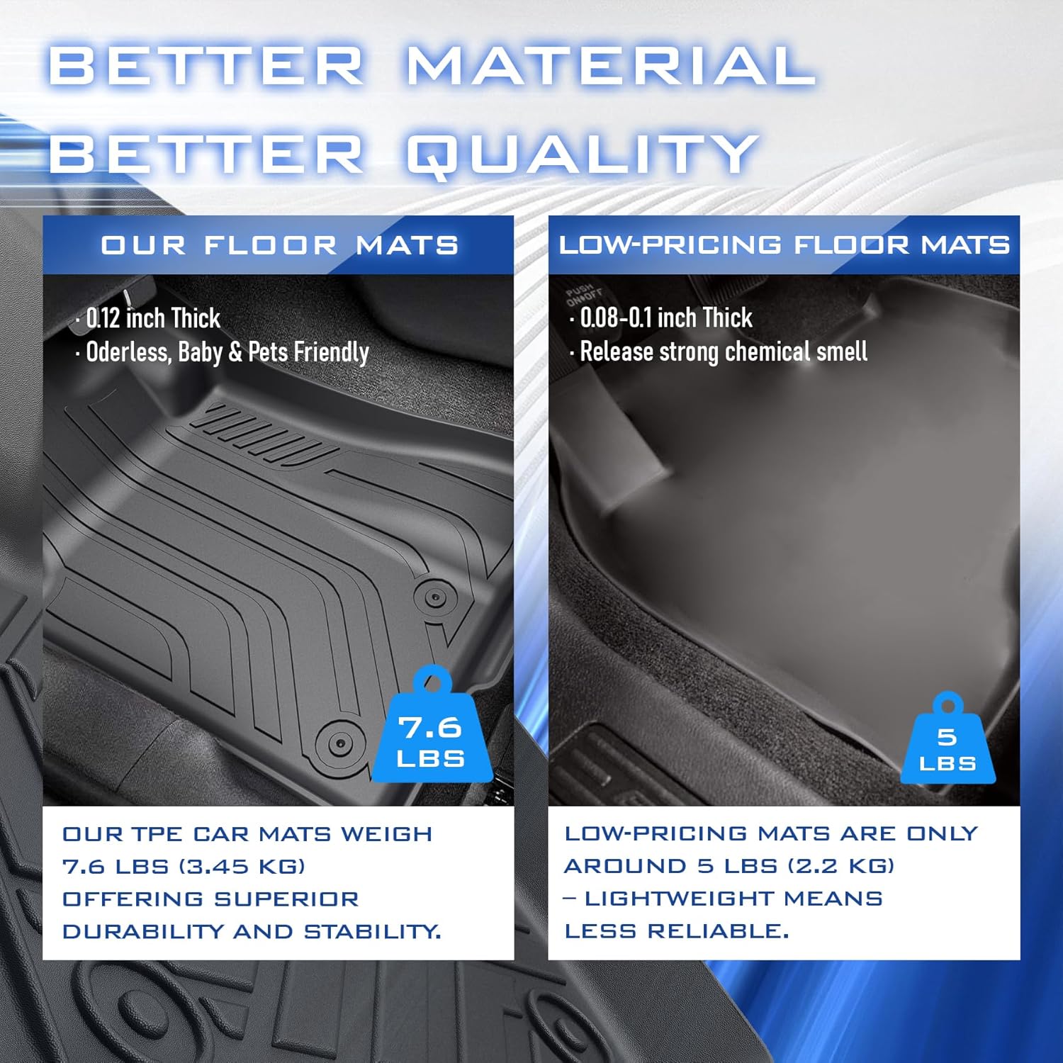 - 【Safe&Durable Material】Specialized floor mats for Ford Mustang 2015-2017 2018-2022 2023 2024. Made of 3.3-mm-thick, odorless TPE material, these automotive floor mats are built to last in extreme weather conditions, so you never have to worry about cracking, curling, or damage.