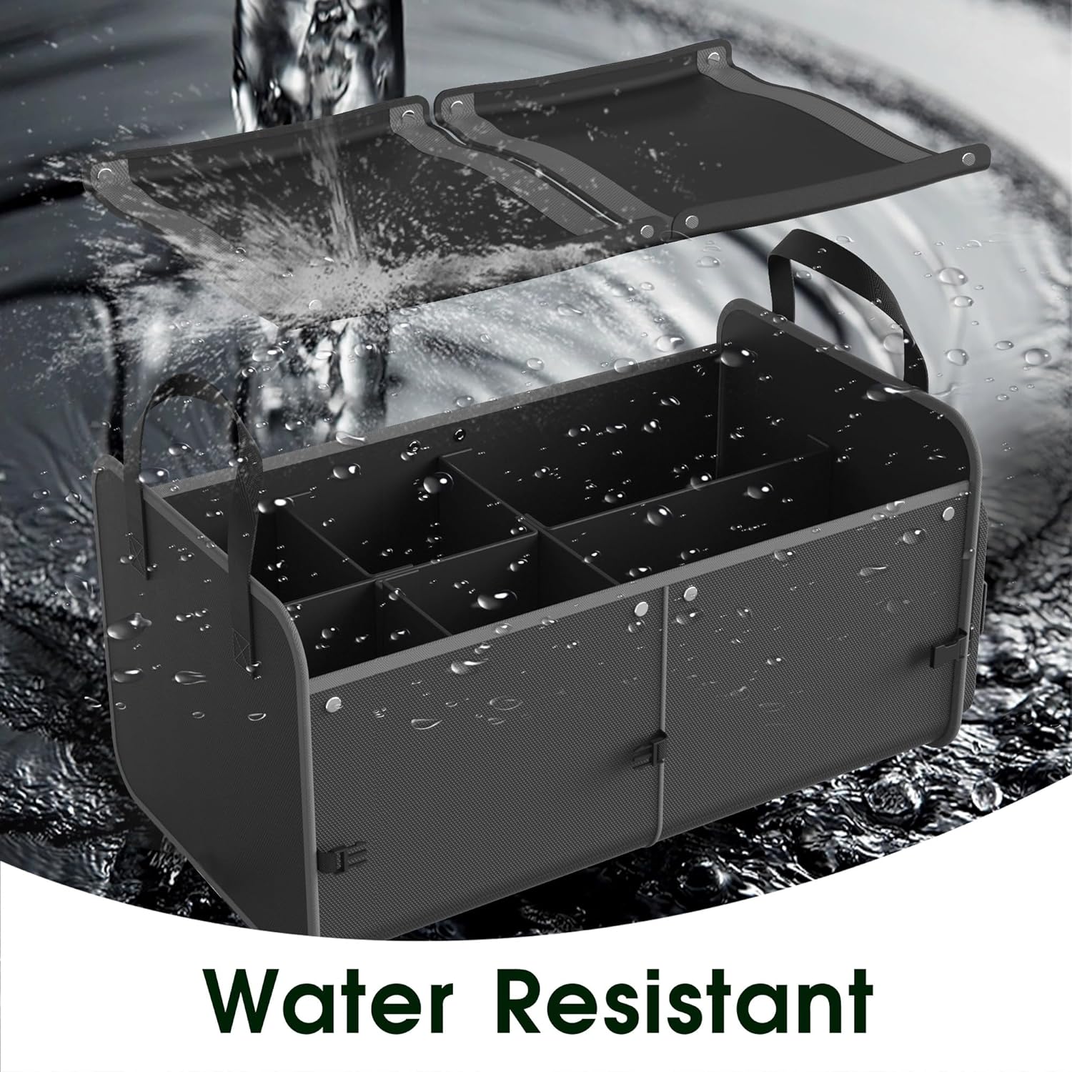 Foldable Waterproof Car Organizer with Non-Slip Traction Rope, 23.2”x13.8”x11.8” Heavy-Duty Trunk Organizer for SUV, Car Essentials List, Portable Vehicle Organizer,BLACK-M003