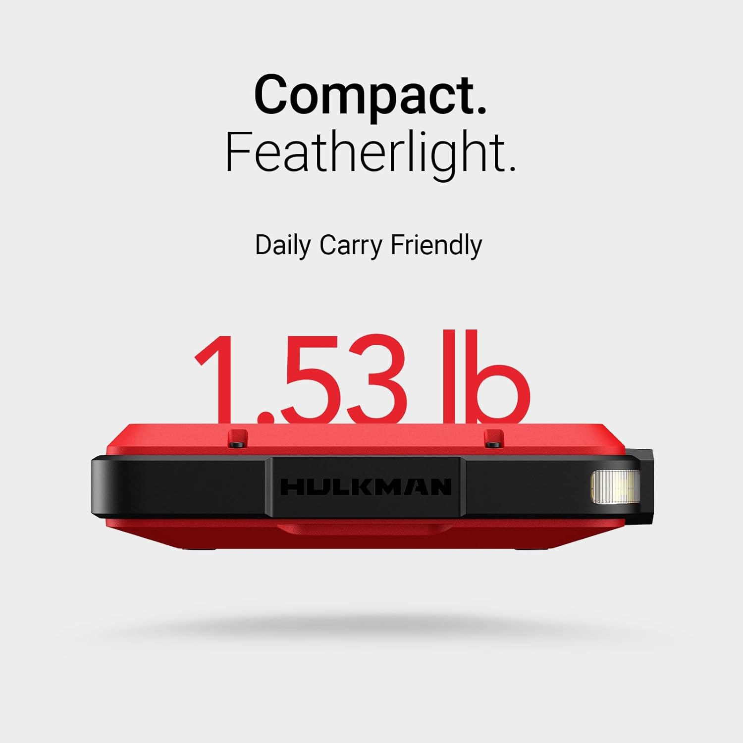 Hulkman Alpha, Ultra Red, 1250A 44.4Wh Battery Jumper Starter Portable, 12V Modern Car Jump Box with Jumper Cables, for 7.0L Gas/4.0L Diesel Engines, 65W Fast Charging, IP65 Rated, Large LED Display