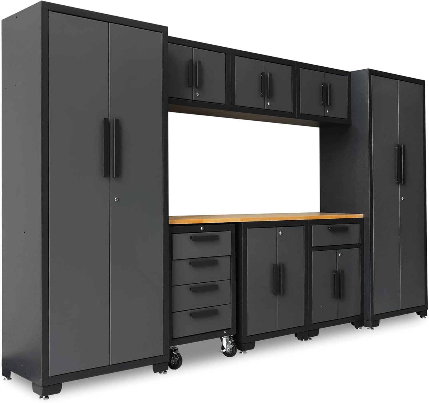 Torin Garage Cabinets Storage System, 9 Piece Included Steel Drawers Rolling Chest,Locked Storage Cabinet, Perfect for Organizing Garage and Tools, Black/Grey