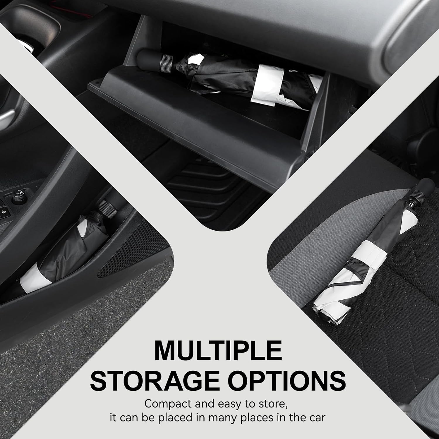 - DURABILITY: Built with 10 robust umbrella ribs, this front windshield umbrella sunshade is extremely sturdy. The bendable tubes can be flexed 360°, and the silicone tips protect your car's interior from scratches and damage, ensuring long-lasting use and peace of mind.