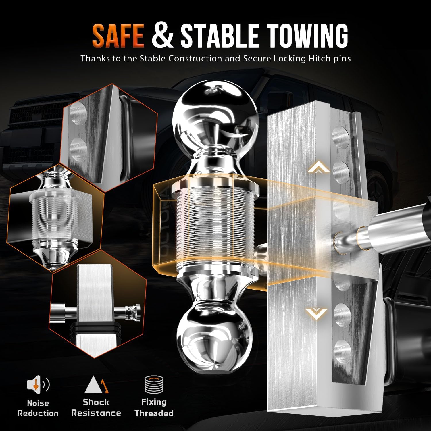 - Patented Design - This Adjustable Truck Hitch Adopts the Second Generation Patented Design Strengthens The Connection Between The trailer Balls And The Ball mount, And The Maintenance-free Design Provides Greater Safety During Travel.