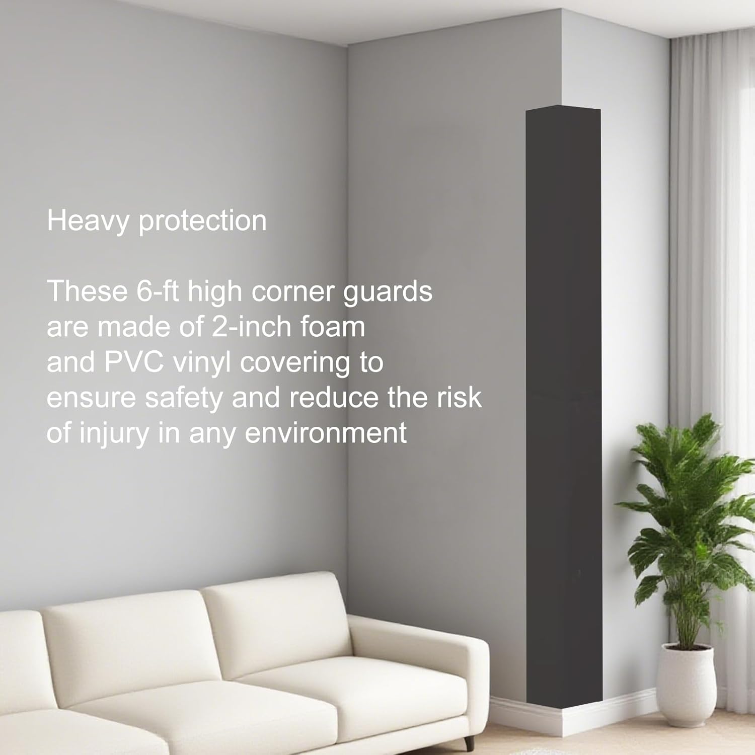 2pcs 6ft Tall Wall Corner Guards Protectors, Heavy Duty 2" Thick Padding, Waterproof Garage Wall Protector for Baby Playrooms, Schools, Gym, Porch