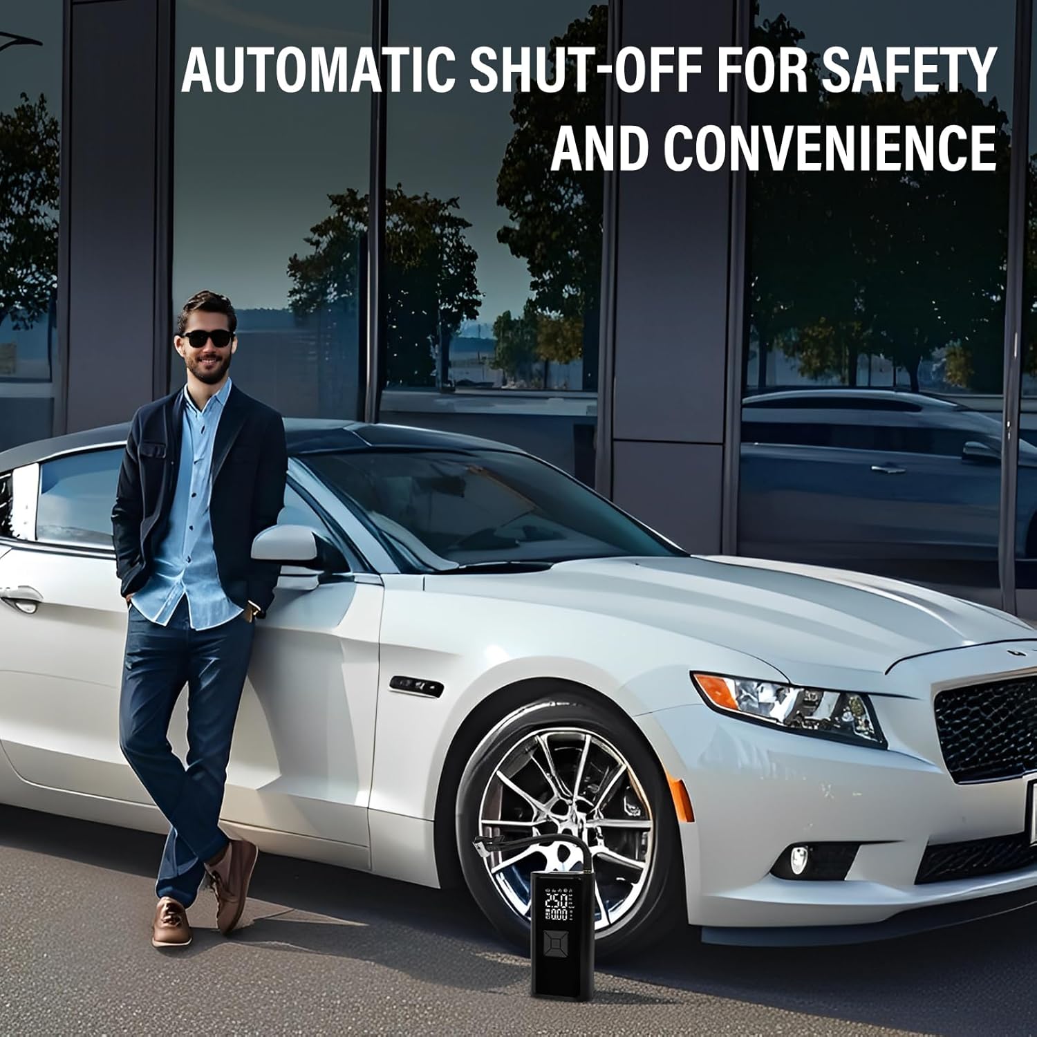 Tire Inflator Portable Air Compressor - Cordless Air Pump with Digital Tire Pressure Gauge, Accurate Dual LCD Display & LED Light, for Car/Motorcycle/E-Bike/Ball