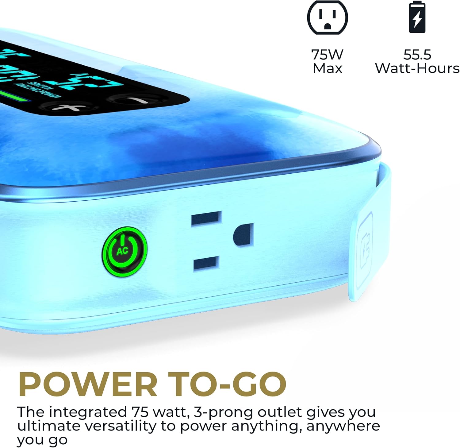 - SPECS: Input: USB-C (PD 20W max) | Output: AC Output (110V 75W max), 1x USB-C PD ( 20W max), 1x USB-A (12W max