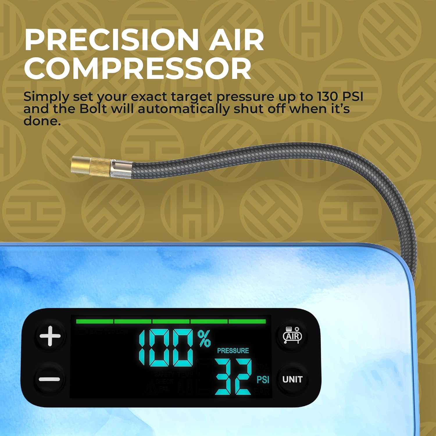HALO Bolt Ultimate 3 Portable Car Battery Jump Starter | 130 PSI Air Compressor, 55.5Wh USB Power Bank, Large Display, Emergency Floodlight & Charger, Jumps Cars SUVs & Trucks, Inflates Tires — Blue