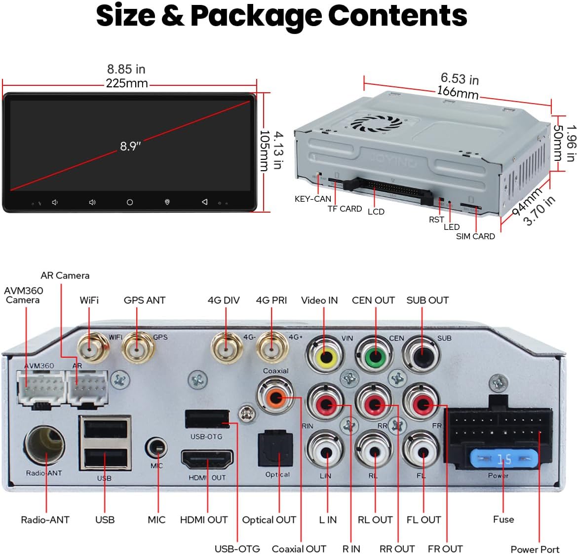 Joying 8.9" Single Din Touchscreen Radio Android 13 Head Unit with Carplay and Android Auto 4GB+64GB Detachable Car Stereo with Bluetooth, AM/FM, Subwoofer Output, GPS(JY-HTS01N4)