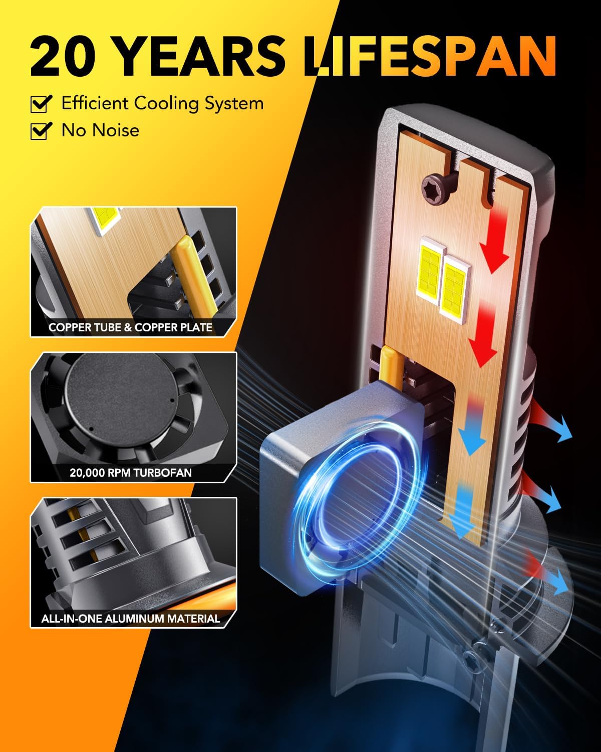 - 【1000% Brighter vs Halogen】60,000LM daylight-white beams – 10X brighter than dim yellow halogens. See roadkill 500ft ahead, even in Appalachian fog.